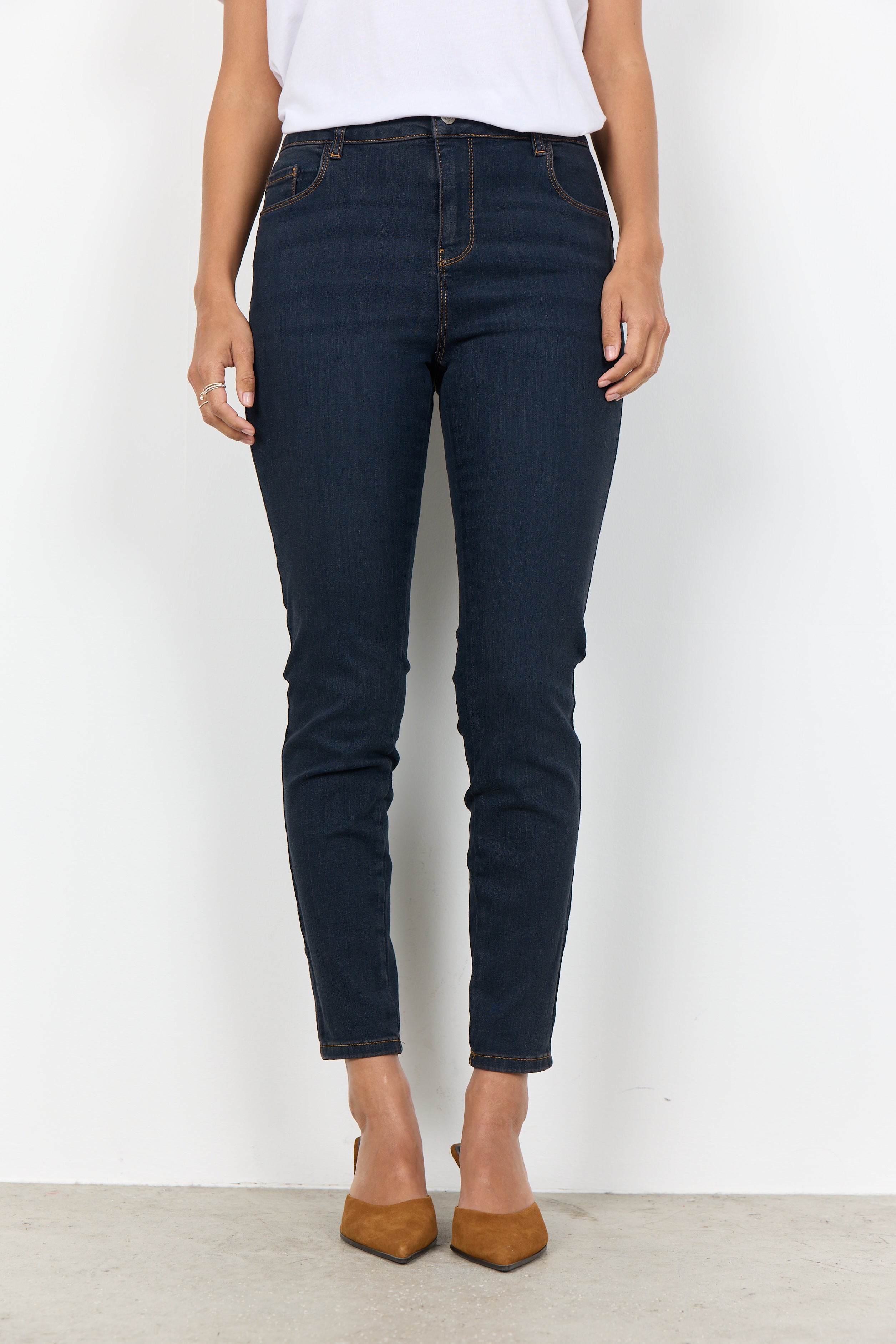 Kimberly PATRIZIA fra SOYA CONCEPT er er et par klassiske jeans i en blandings kvalitet af bomuld og polyester. De har en tætsiddende pasform, søm detaljer og to lommer foran og bagpå.