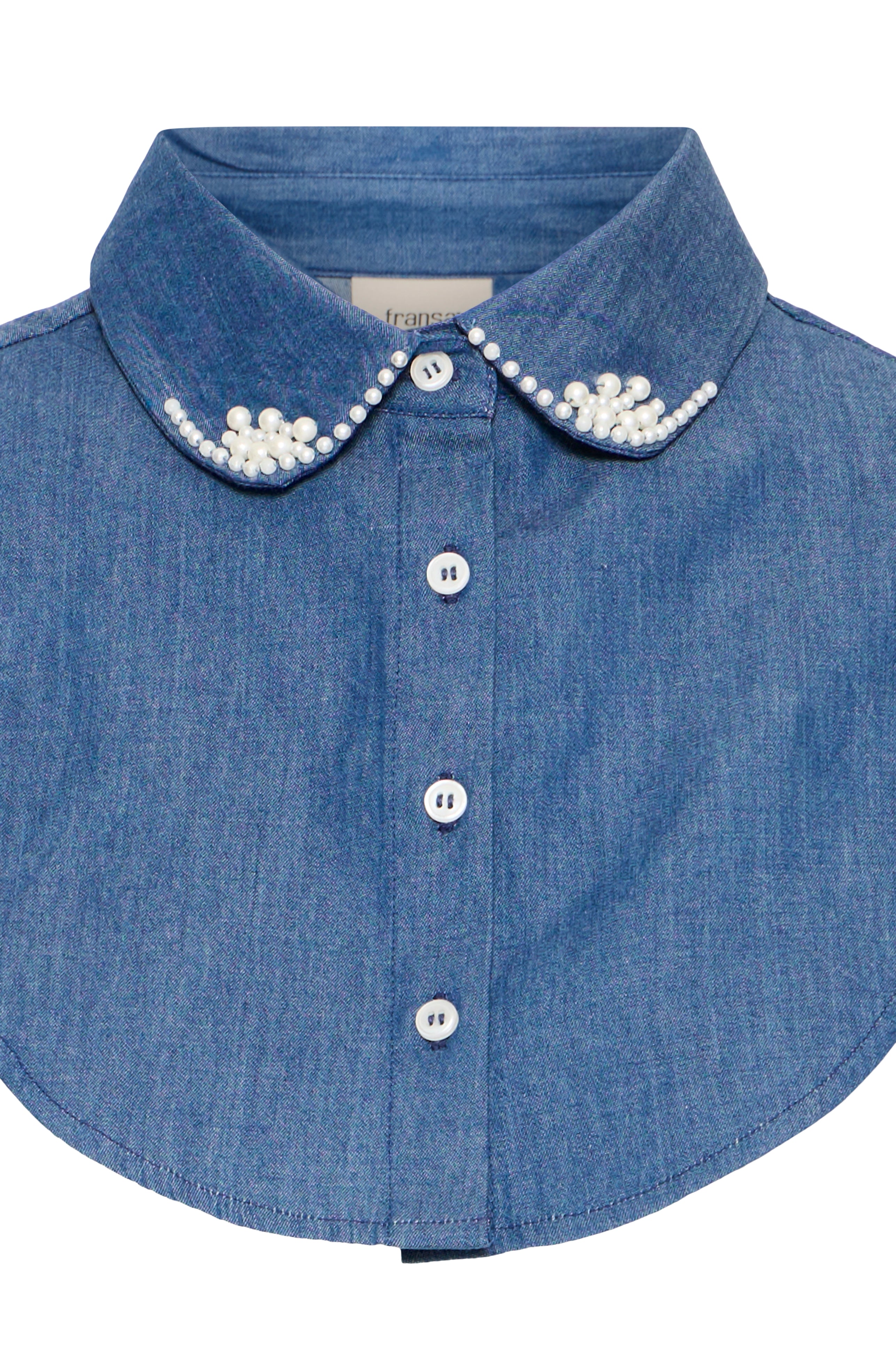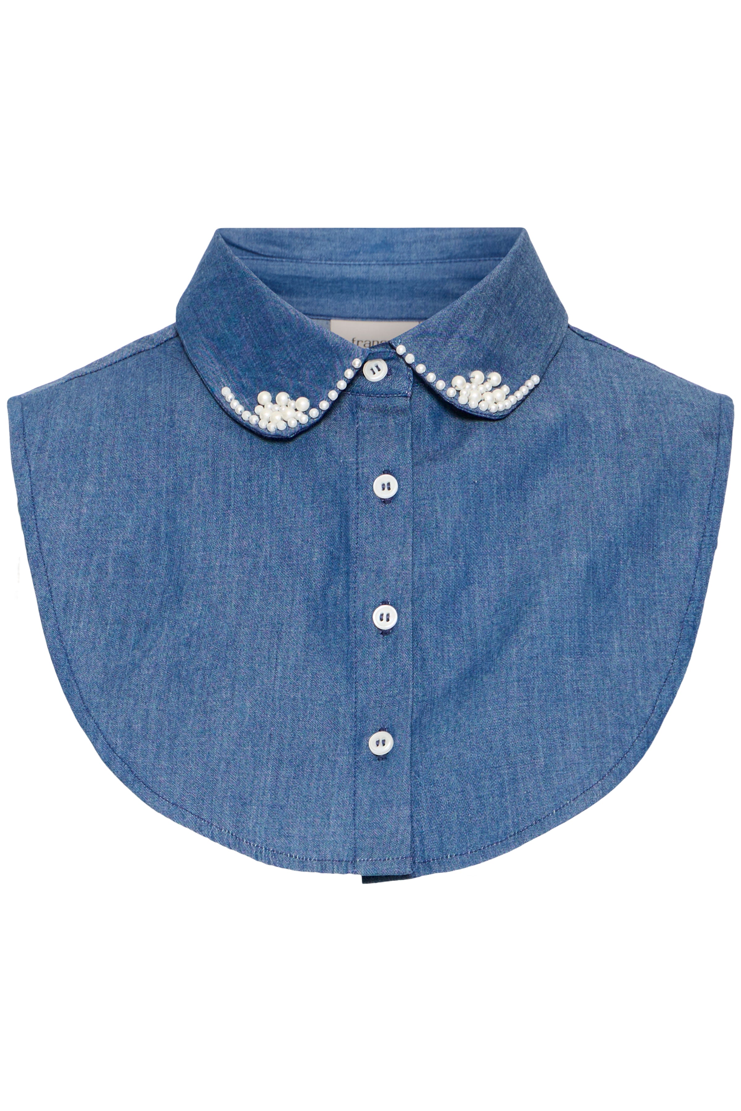 FRCLAIRE COLLAR 1 fra FRANSA er en fin denim krave med perler. Kraven bruges under en sweater eller trøje.