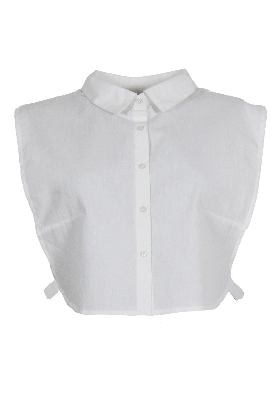 COLLAR skjortekrave fra OFELIA er et must-have både til dine kjoler og striktrøjer. Den fine krave har perlemorsknapper og elastik om busten, der holder den på plads.