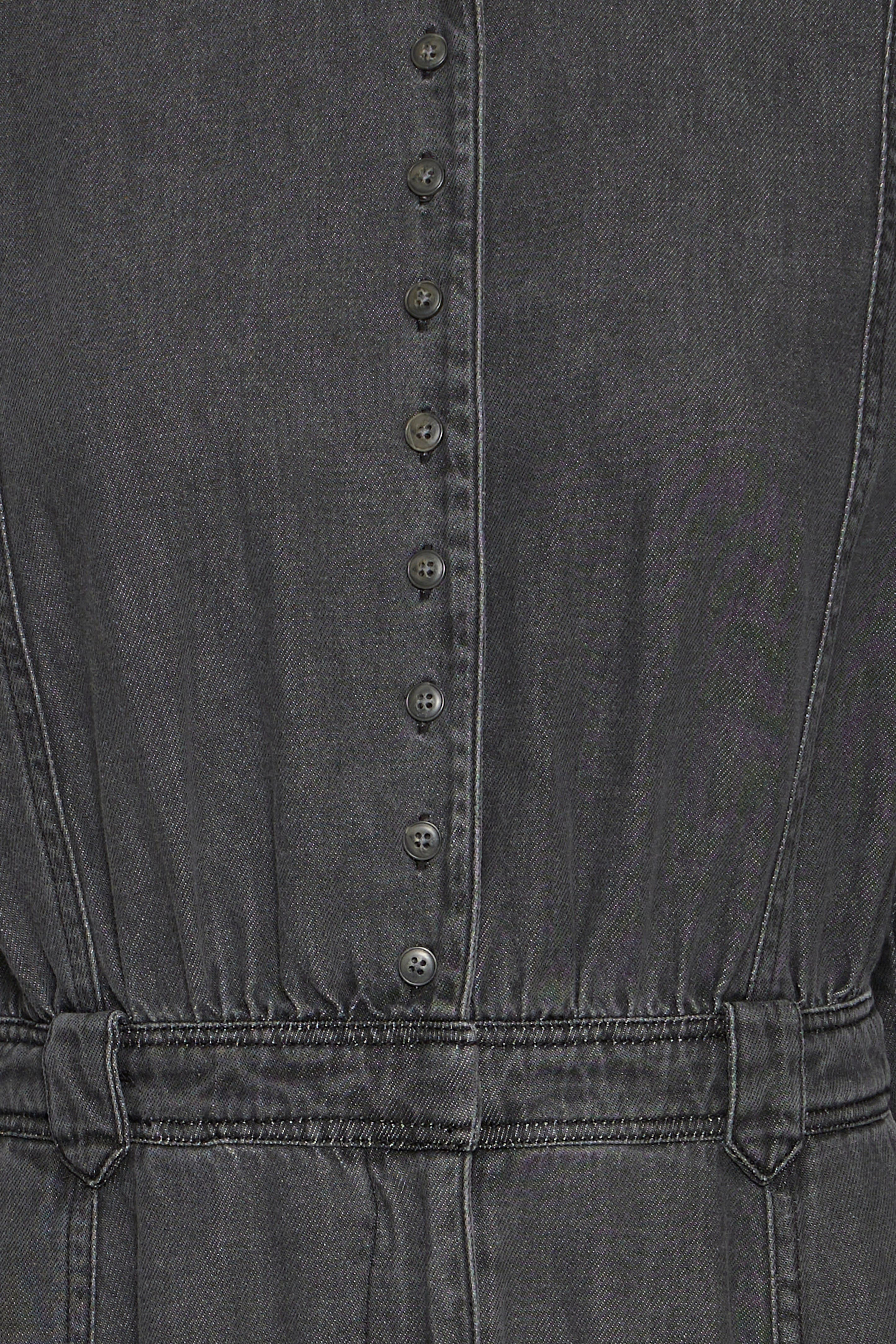 IRJULIETTA denim kjole fra Atelier Rêve - er en kjole med flotte detaljer. Den er knappet ned gennem overdelen, har rund hals, fast linning med bæltestropper og lommer.
