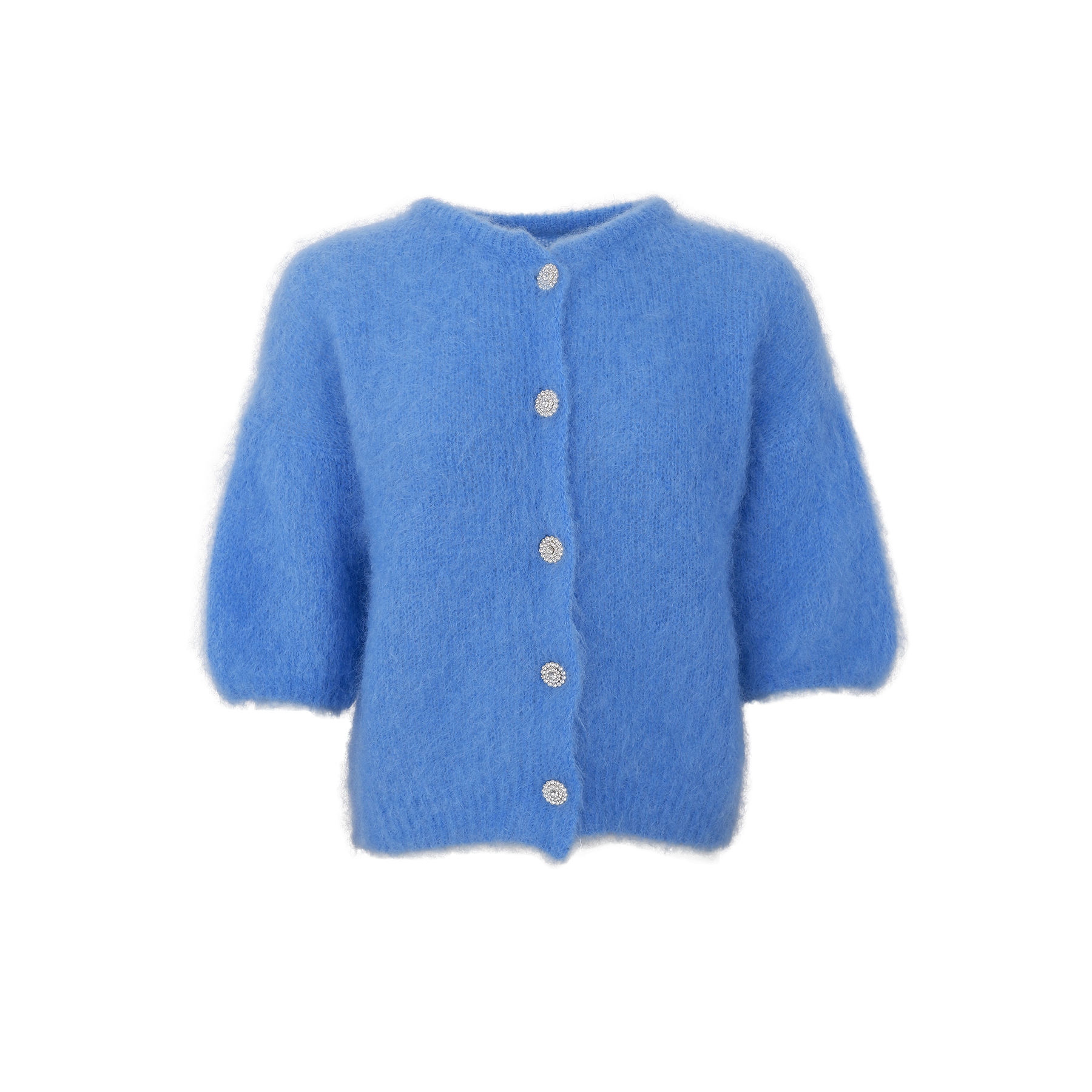 BJØRK mohair cardigan fra Black Colour er en feminin og iøjnefaldende cardigan i en blød og fluffy strikkvalitet med mohair. Modellen har korte diskrete pufærmer og er pyntet med smukke glitrende knapper, der giver et elegant touch. Brug den lukket med bredbenede jeans eller åben over en kjole for et chic lag-på-lag-look.