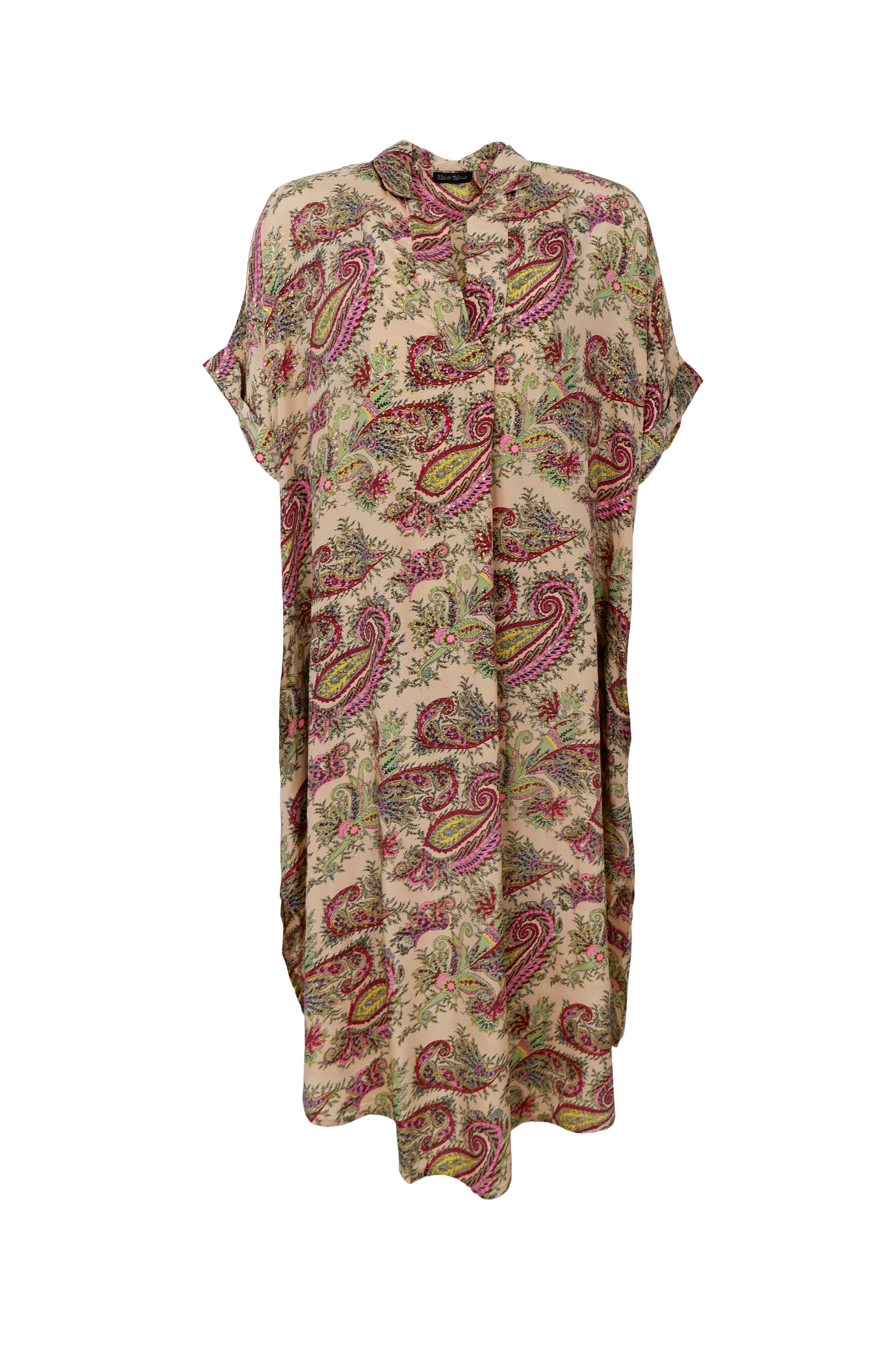 LUNA KAFTAN TUNIC fra Black Colour er en skøn kjole/tunika med korte ærmer, krave, lommer i siderne og en flot v-udskæring.