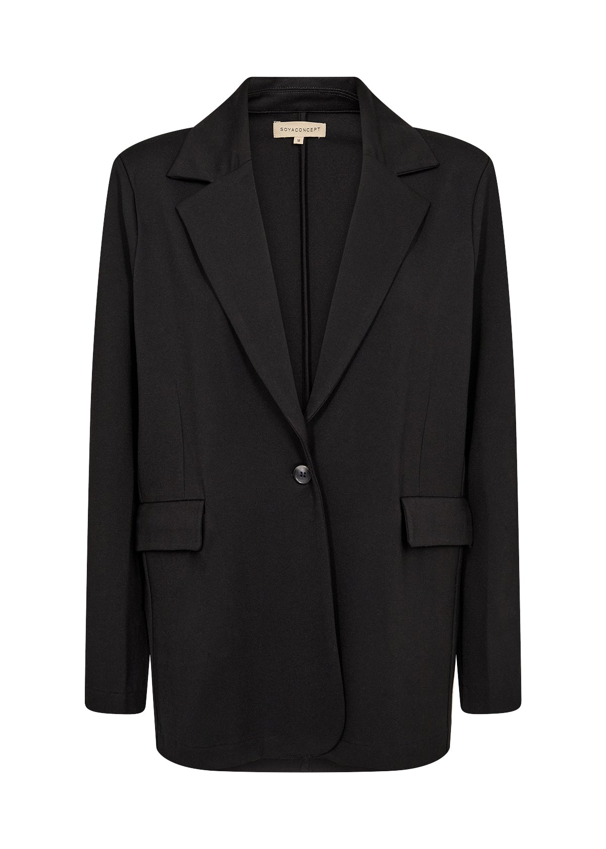 Denne skønne enkeltradede blazer har en klassisk revers krave, lange ærmer og en afslappet pasform. Style denne dejlige blazer med en printet t-shirt og et par jeans for et afslappet, men moderigtigt look. Materialet er lidt kraftigt, med let stretch.