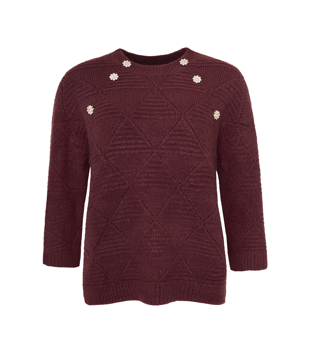 CAMMI STRIK pullover fra OFELIA er en enkel pullover, hvor detaljer med de flotte knapper løfter hele udtrykket. Blusen har et flot strukturstrik der skaber et flot spil i den dybe farve.