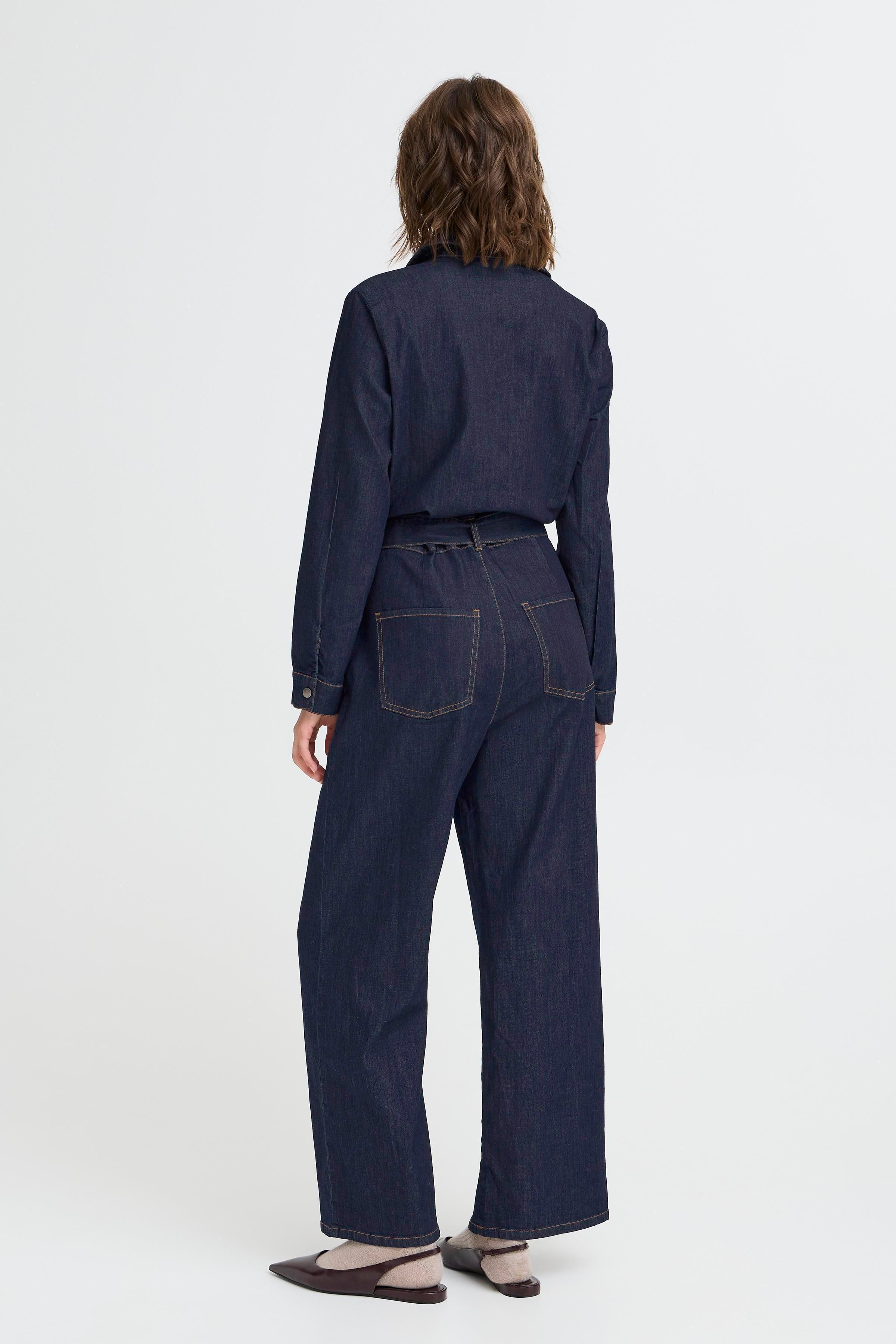FRCHICAGO DENIM BUKSEDRAGT fra FRANSA er en stilfuld buksedragt i denim, der kombinerer klassisk design med moderne detaljer. Denne jumpsuit er fremstillet i et holdbart denim-materiale, der sikrer både komfort og stil til enhver lejlighed. Den langærmede stil giver et tidløst look, mens den elegante krave tilføjer et sofistikeret touch. Med praktisk knaplukning foran er det nemt at tage jumpsuiten af og på. De lige ben med vidde skaber en flatterende silhuet, og det medfølgende bælte i taljen fremhæver figuren. Lommerne tilføjer funktionalitet uden at gå på kompromis med designet. De iøjnefaldende kontrastsyninger giver et unikt og interessant udtryk, som gør denne buksedragt til noget særligt.
