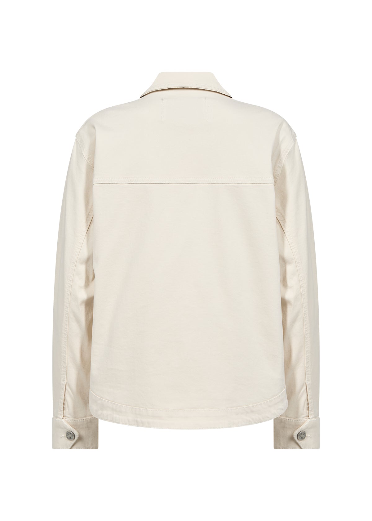ERNA 29 fra SOYACONCEPT er en jakke fremstillet af 97% bomuld og 3% elastan. Den har en klassisk krave, knaplukning og to store lommer foran med en diskret struktureret finish.
