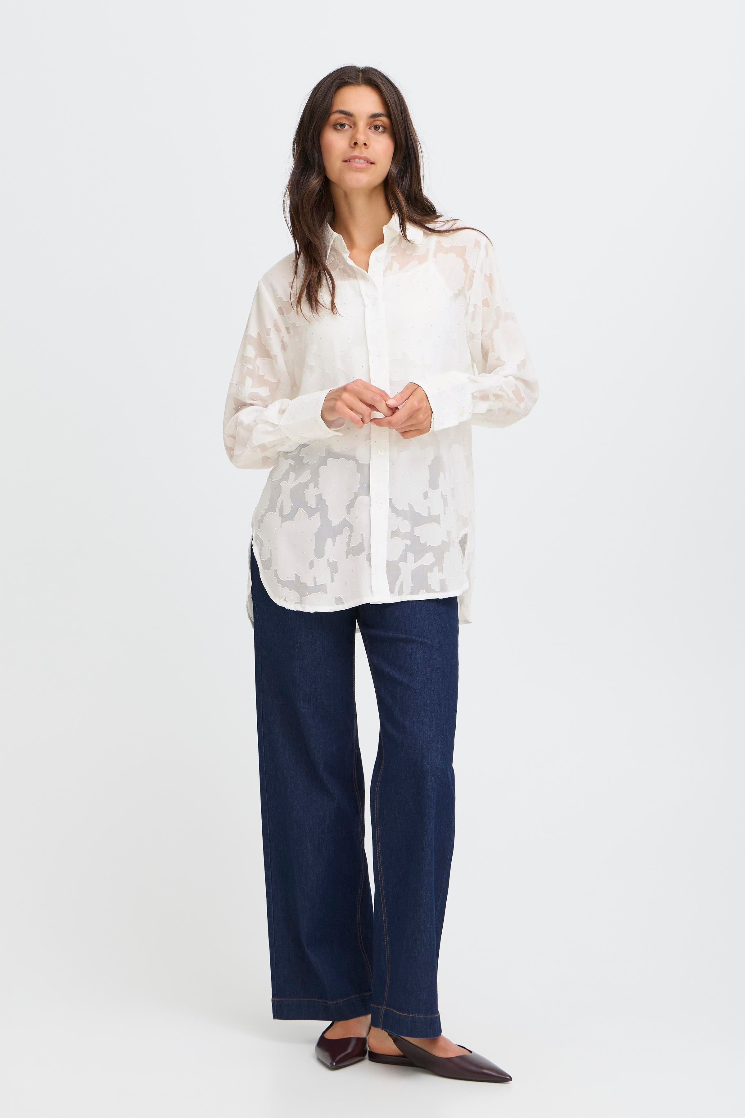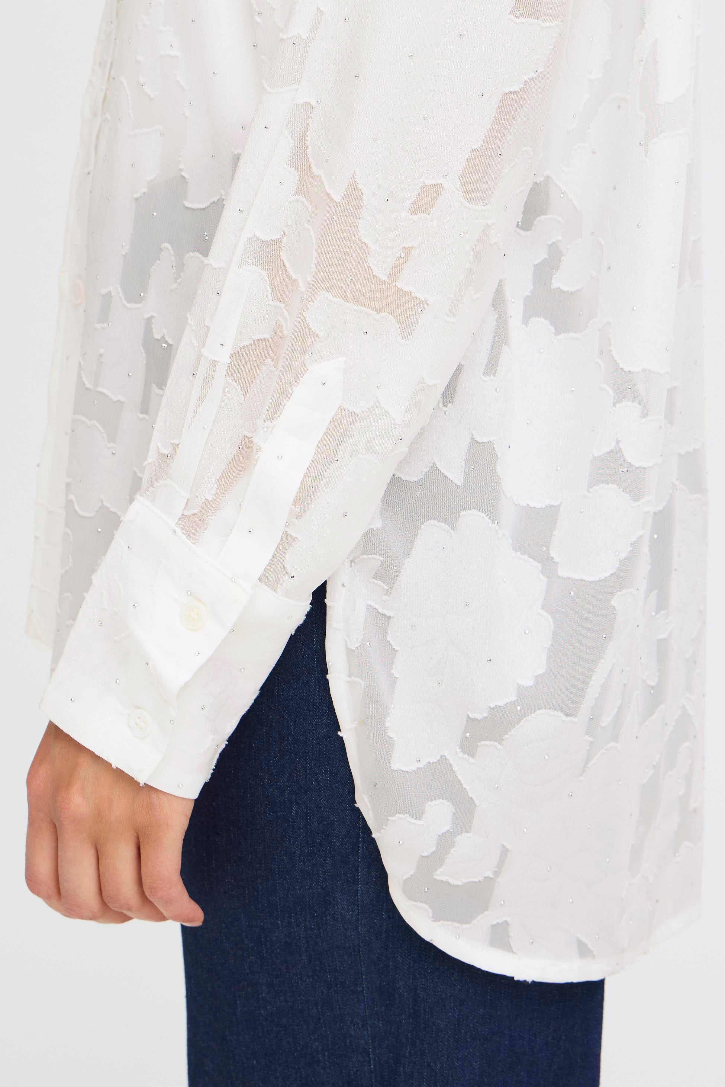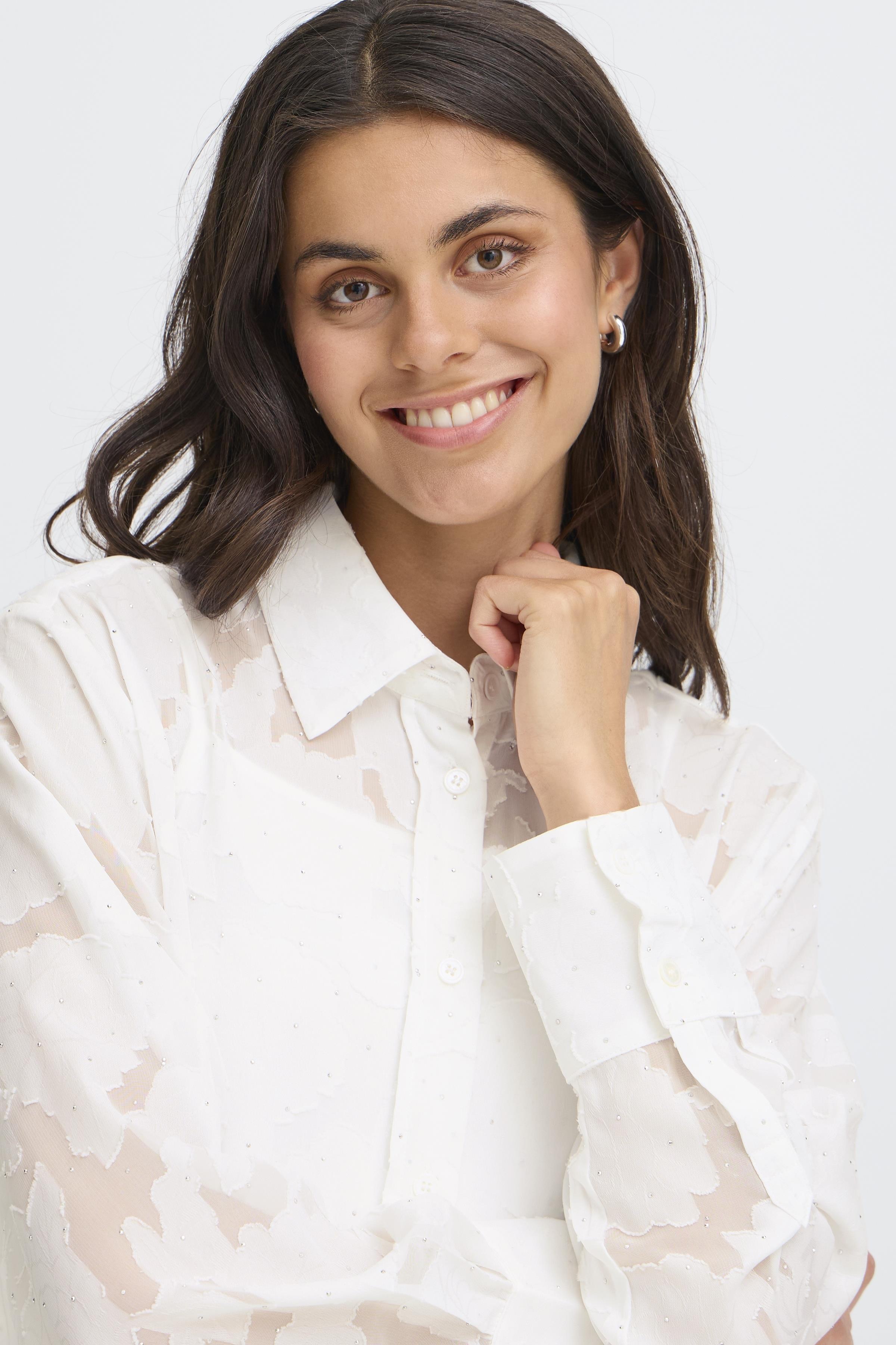 FRRHINESTONE skjorte fra FRANSA er en sød blonde skjorte med små similisten på. FRRHINSTONE skjorten har lange ærmer, er gennemknappet og har en god længde ned over hofterne.