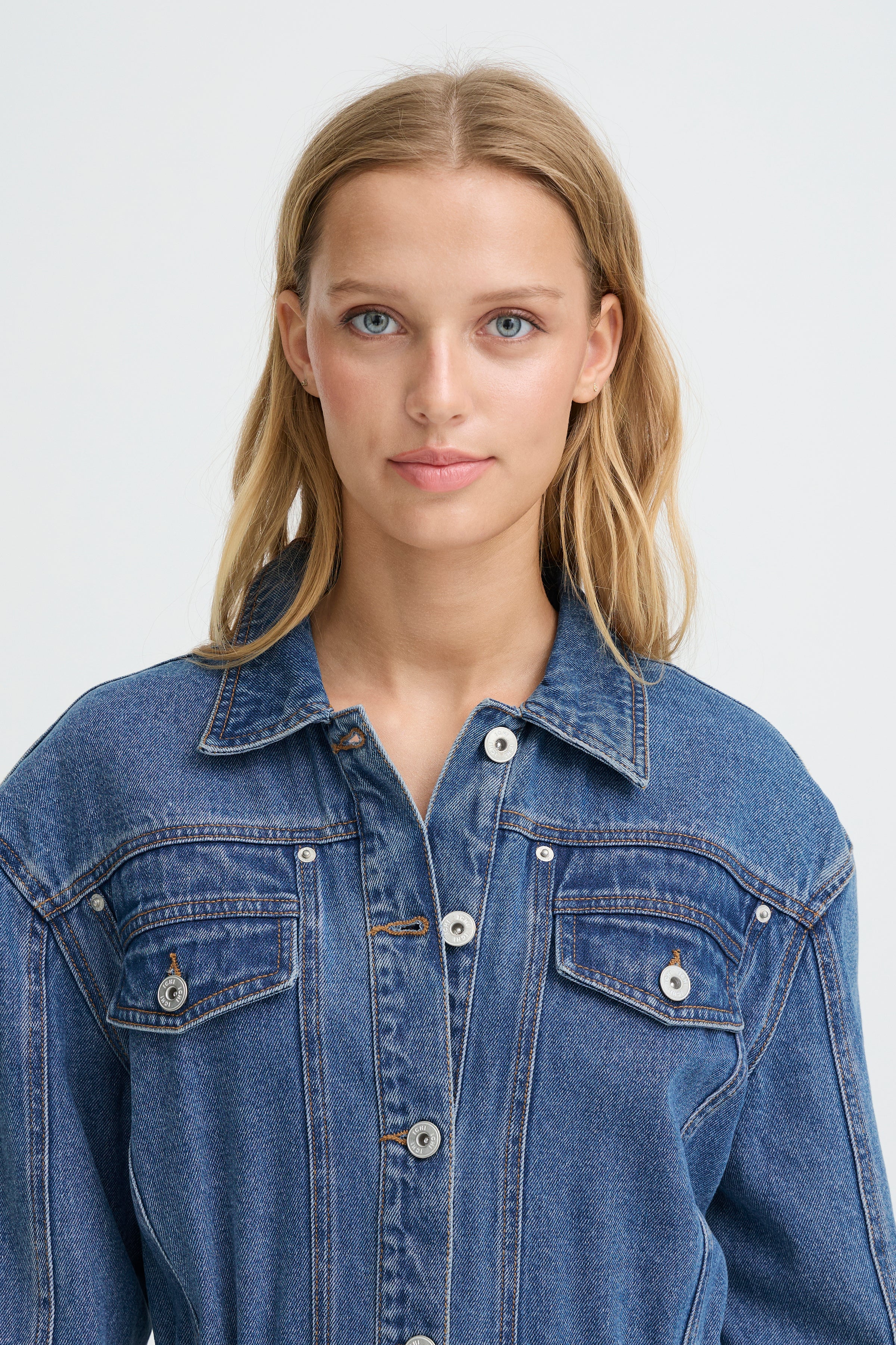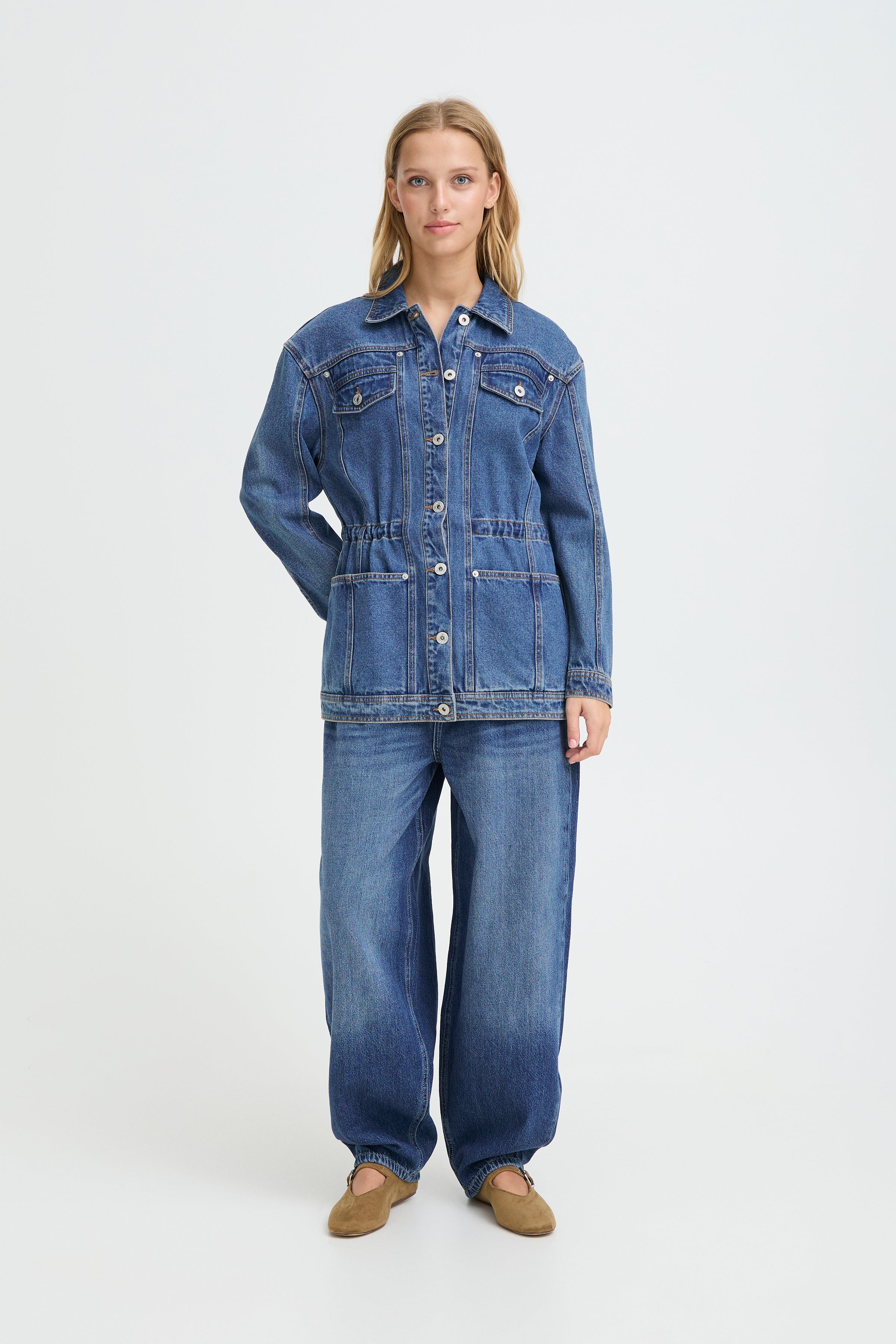 IHMIANNA jakke fra ICHI er en Utility-jakke med afslappet pasform. Lækker denim, knaplukning og justerbar talje. Fire store lommer giver funktionelt udtryk. Synlige stikninger understreger tidløst design.