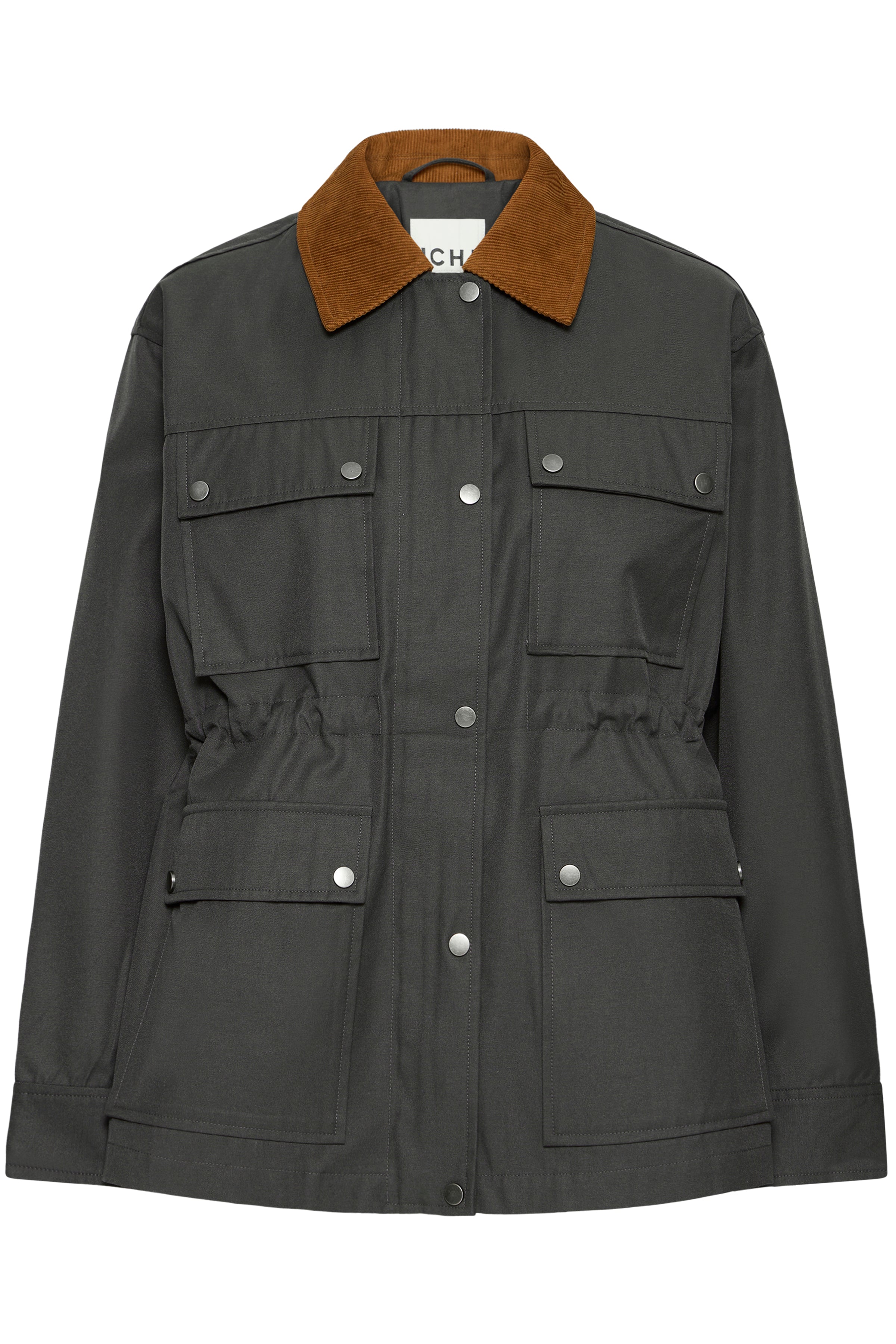 • EDIMO jakke fra ICHI er en Utility-jakke med afslappet pasform, fløjlsflipper, trykknaplukning og justerbar talje. Fire store lommer giver funktionelt udtryk. Synlige stikninger understreger tidløst design.