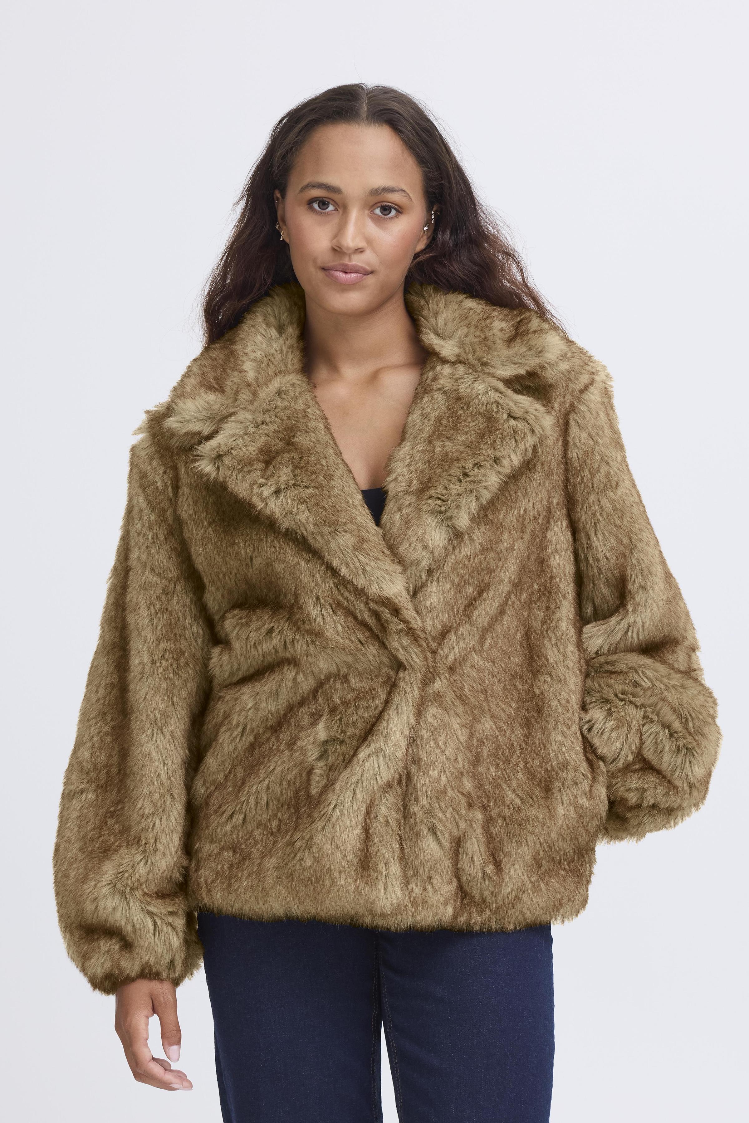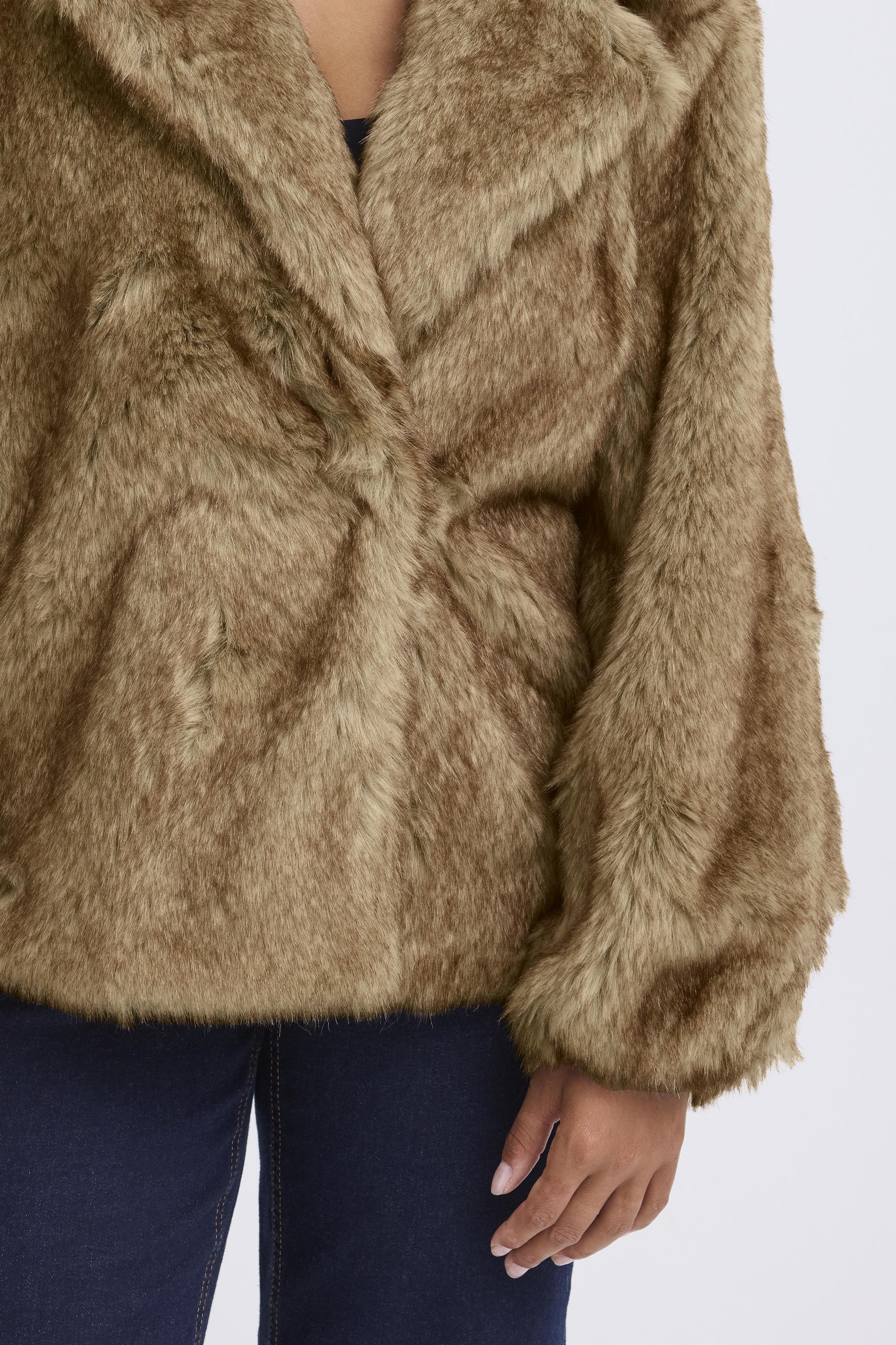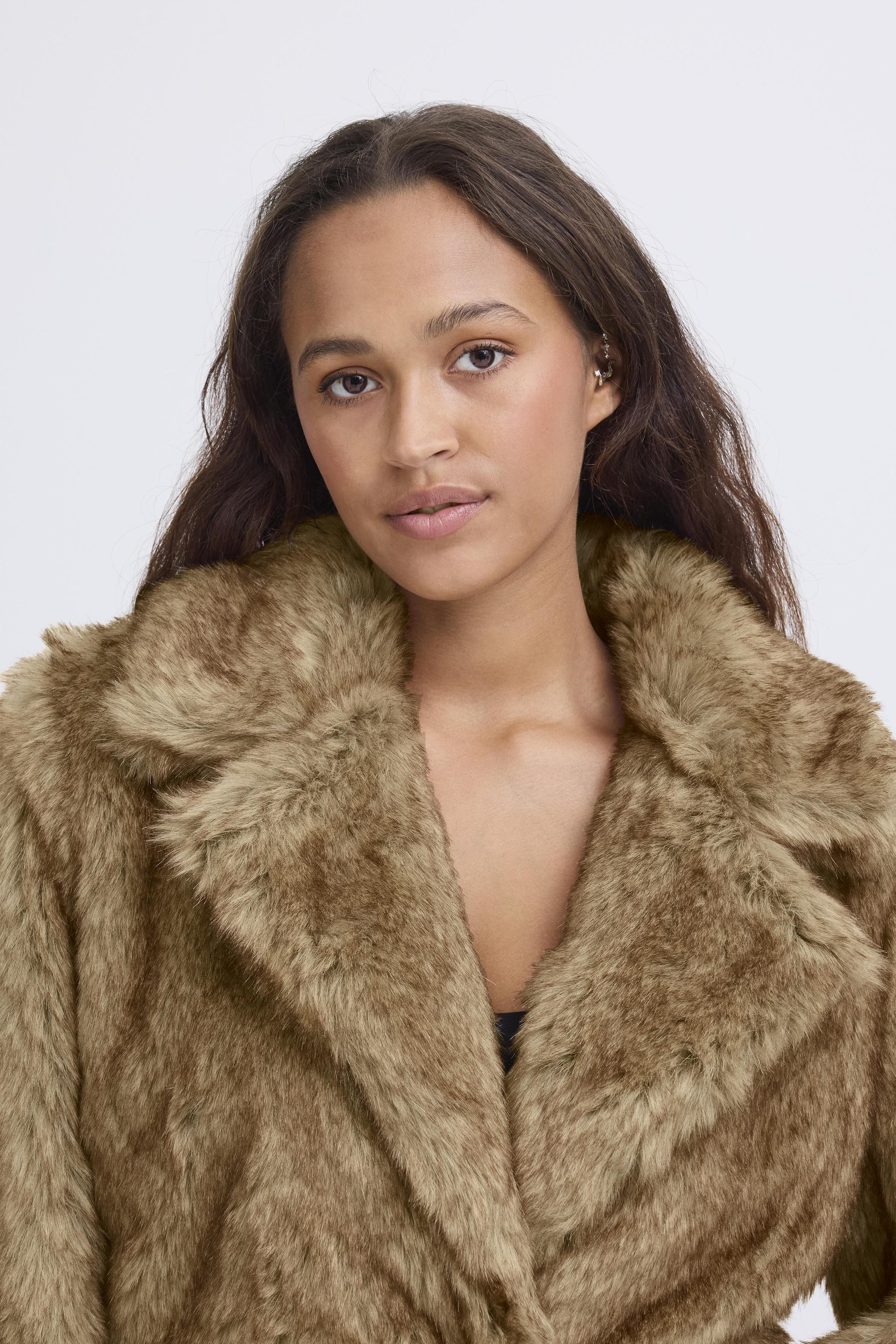 IHFAZOCA pelsjakke fra ICHI i en smuk brun farve er kommet i denne pels lignende kvalitet. Den giver dette eksklusive look men uden at den er rigtig pels.
