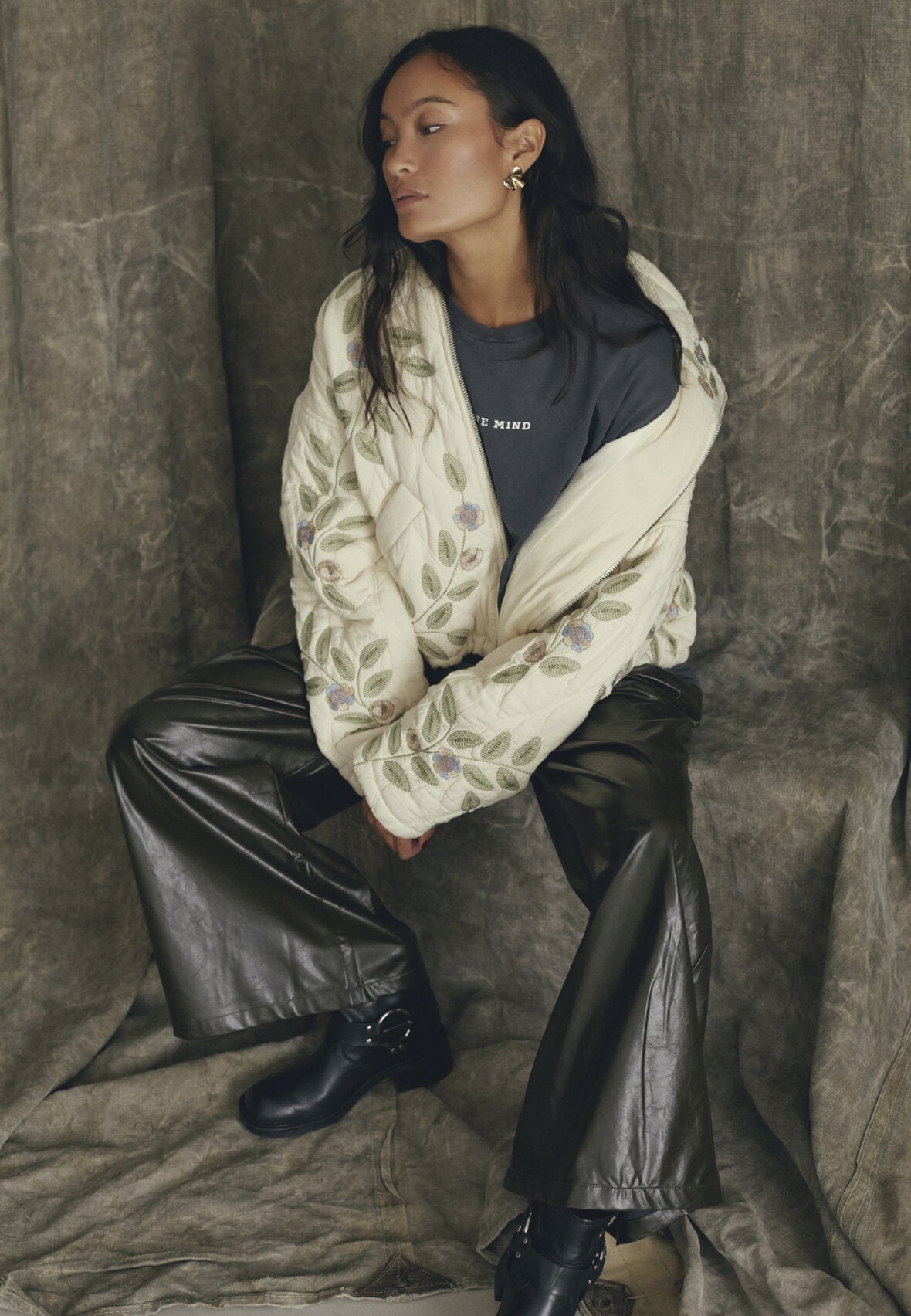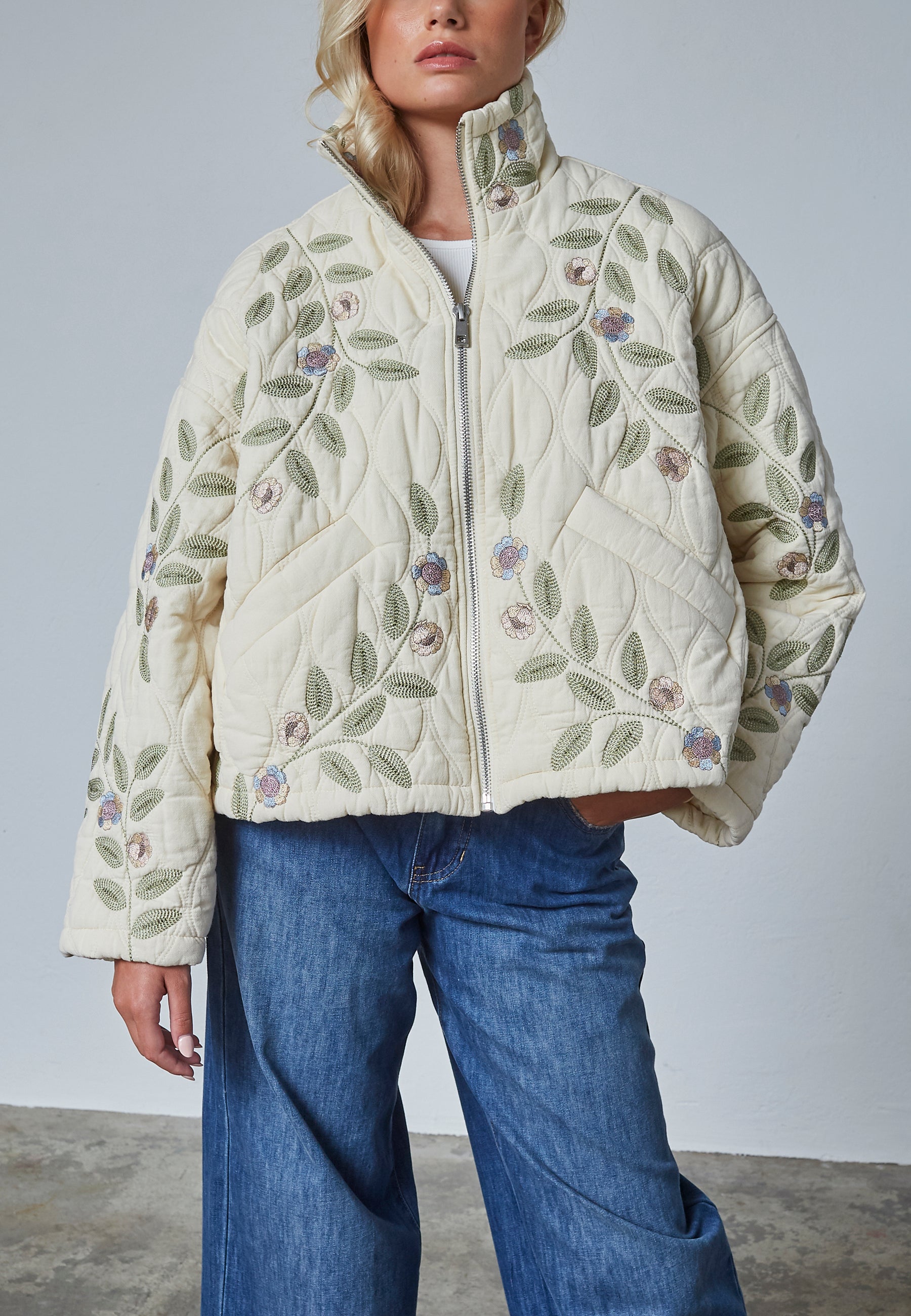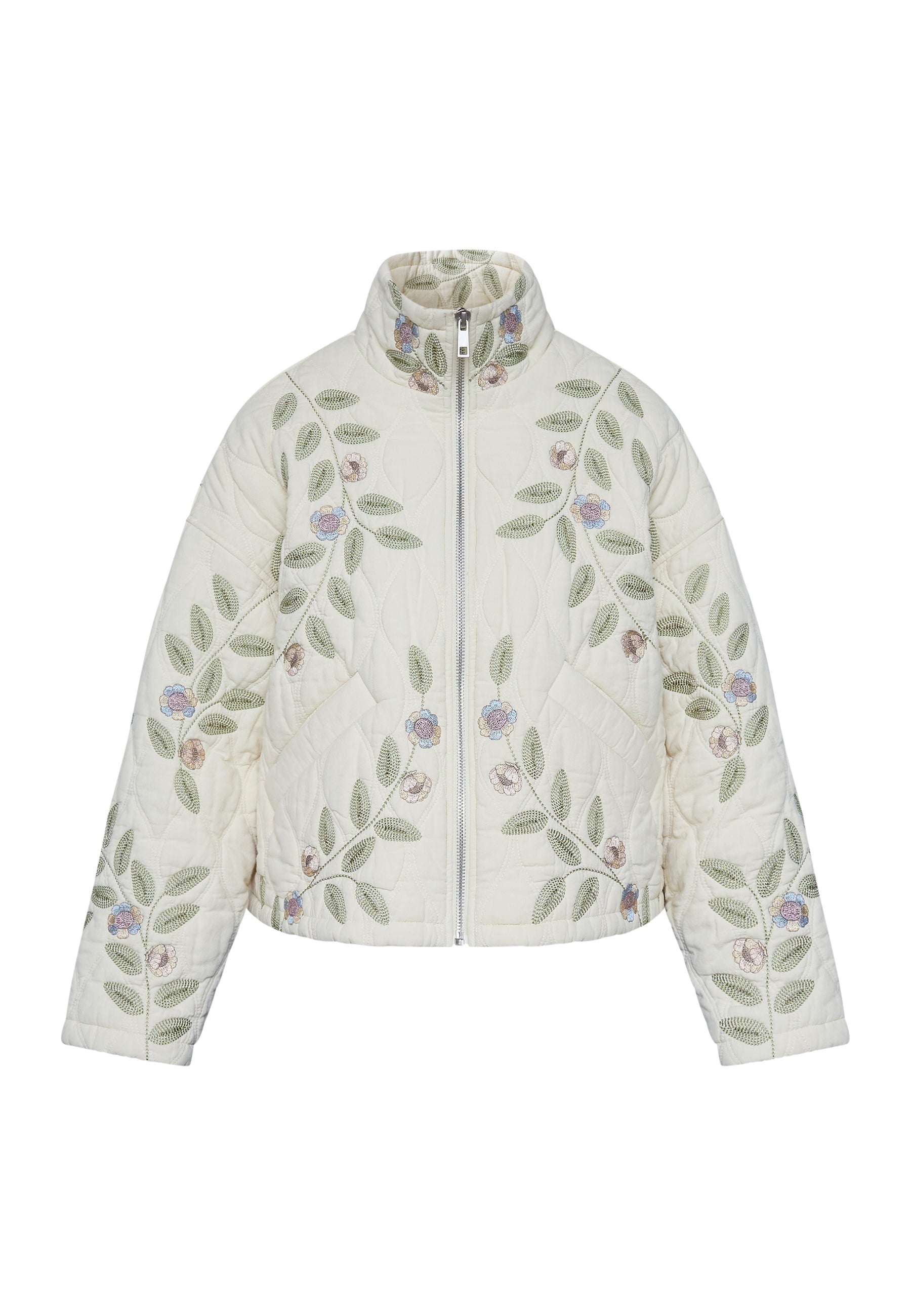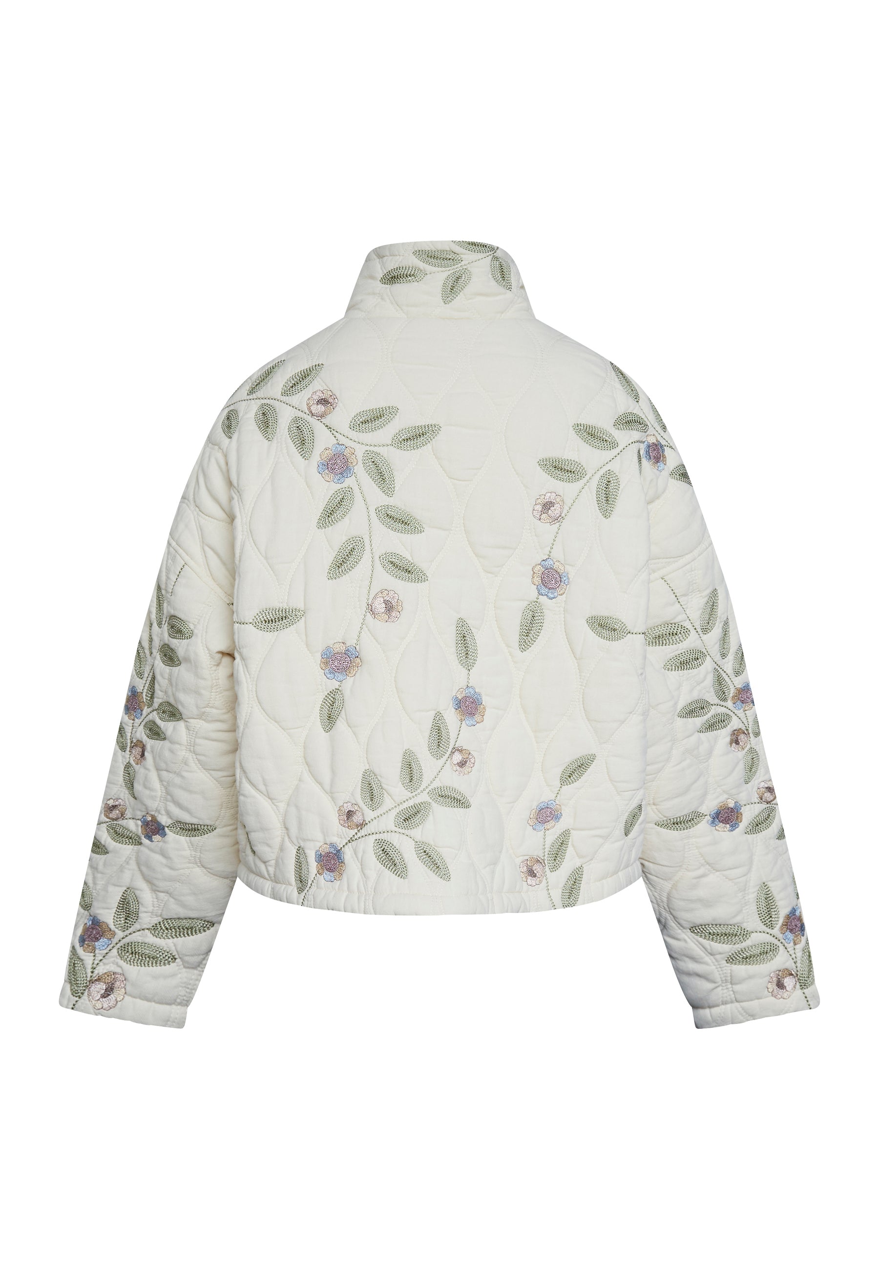 LOVE1378 er en super flot quiltet jakke fra LOVE & DIVINE med et fint broderet blomsterdesign på overfladen.
