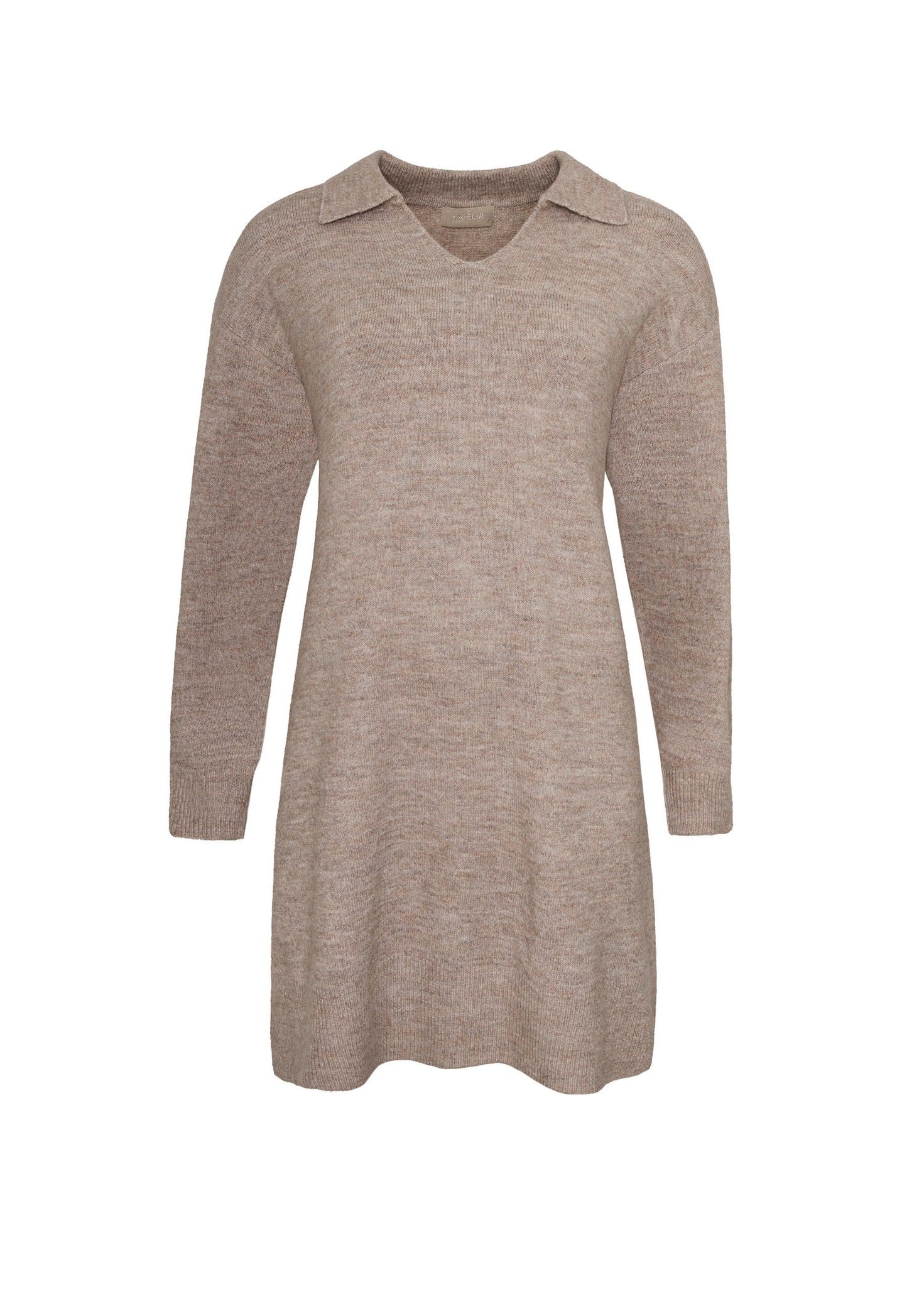 BEA strikket tunika fra OFELIA er en let mellemlang tunika kjole i det blødeste strik. Den har V-hals og polo-krave, lange ærmer og slids i siderne. En afslappet og feminin strik, der er nem at style både til hverdag og afslappede stunder.