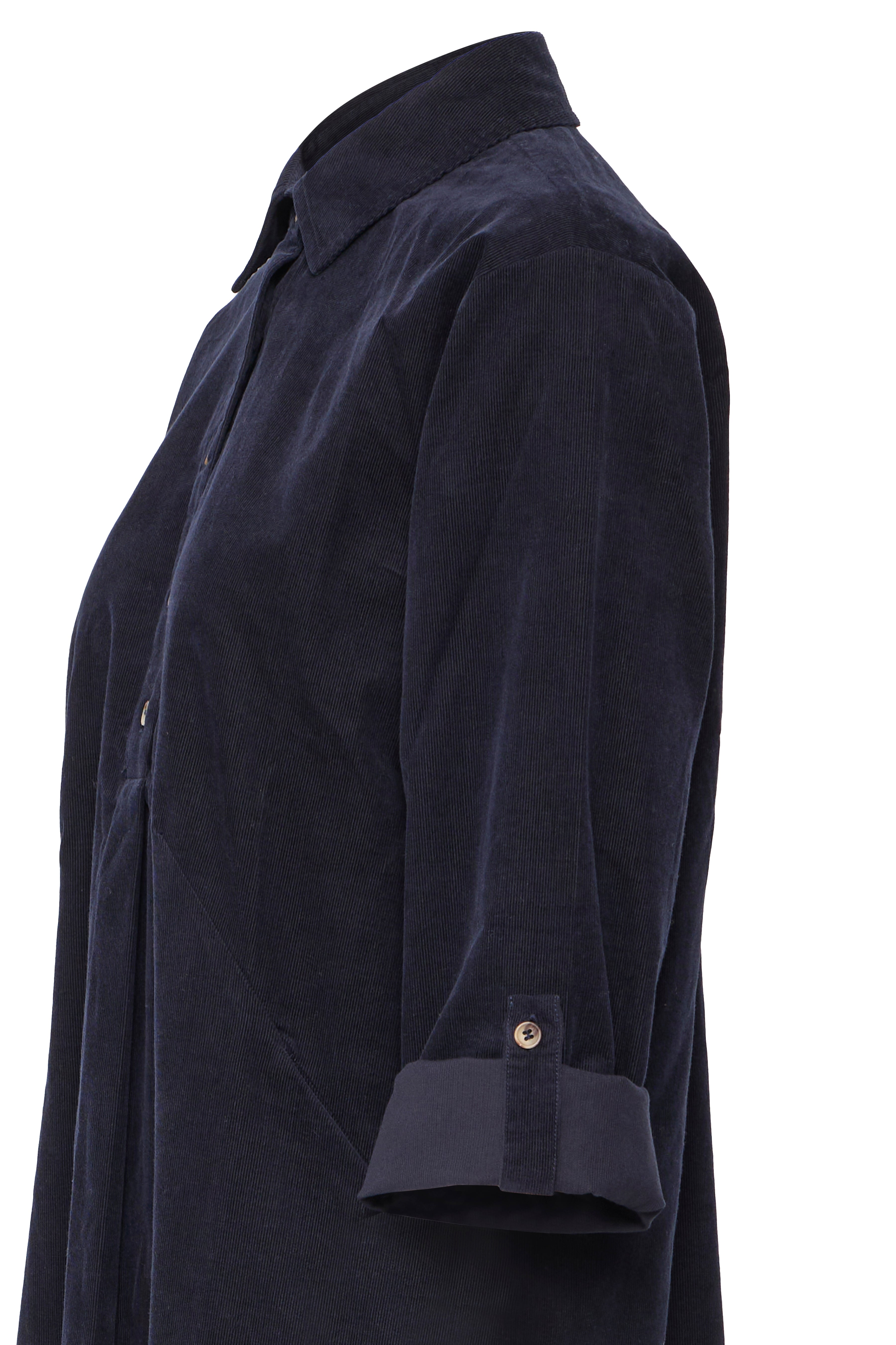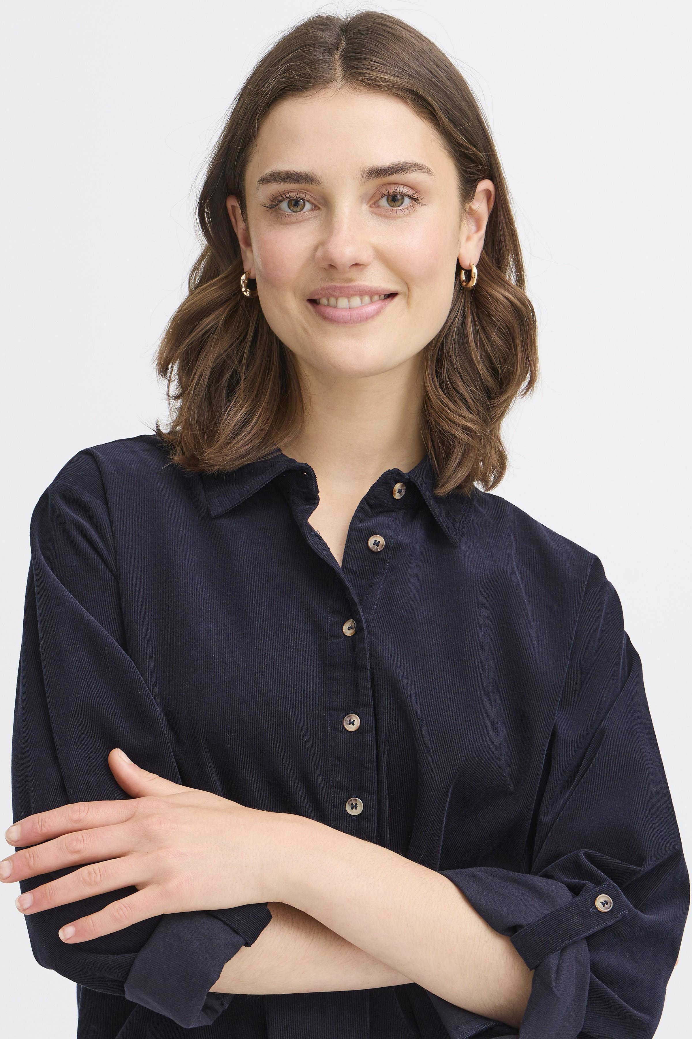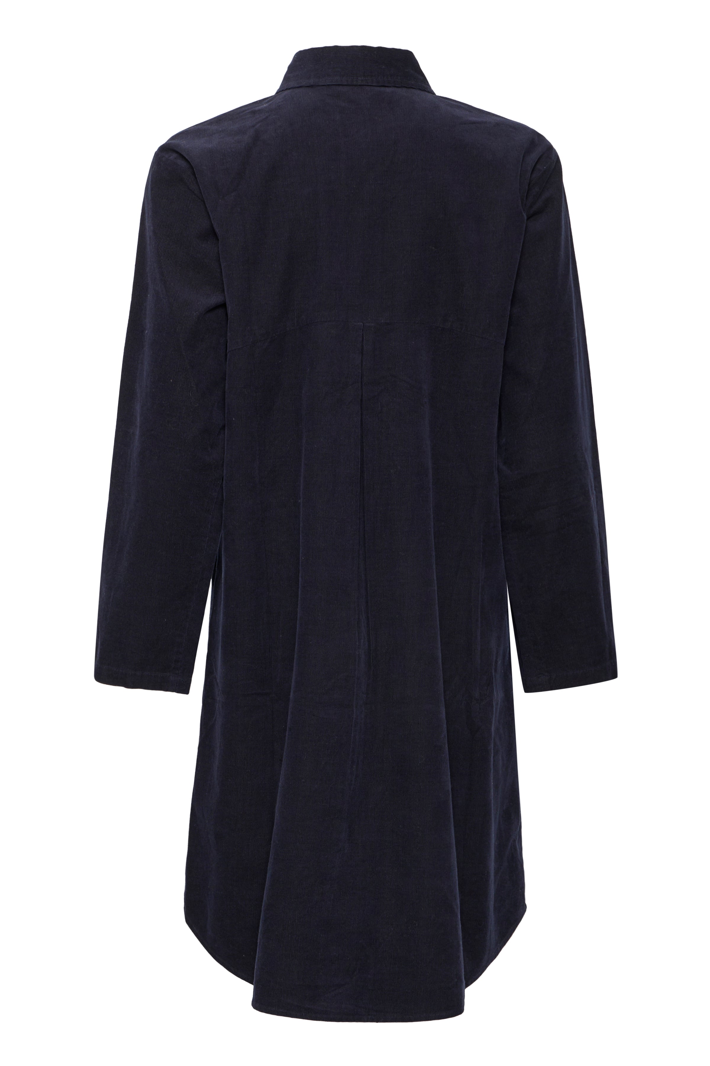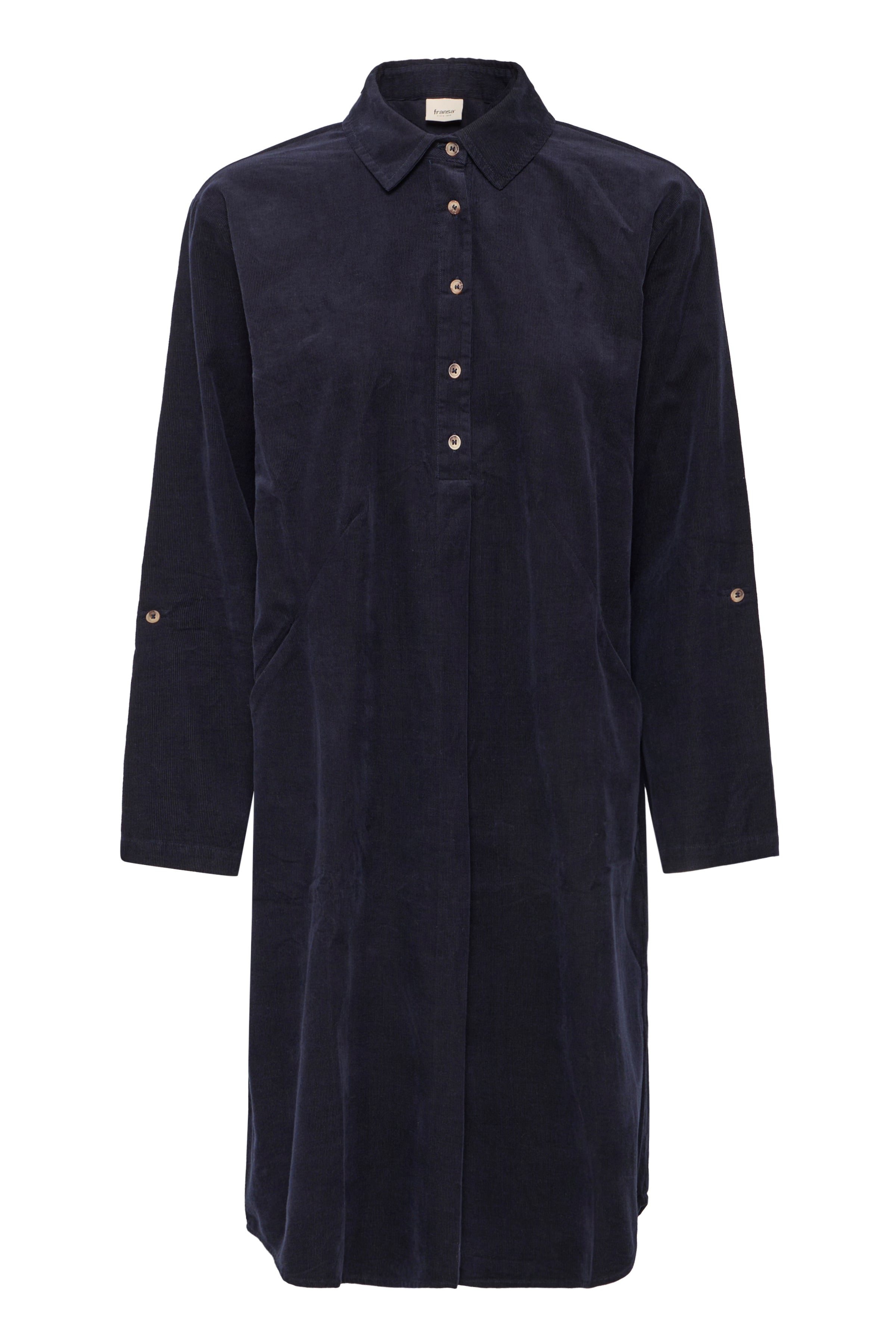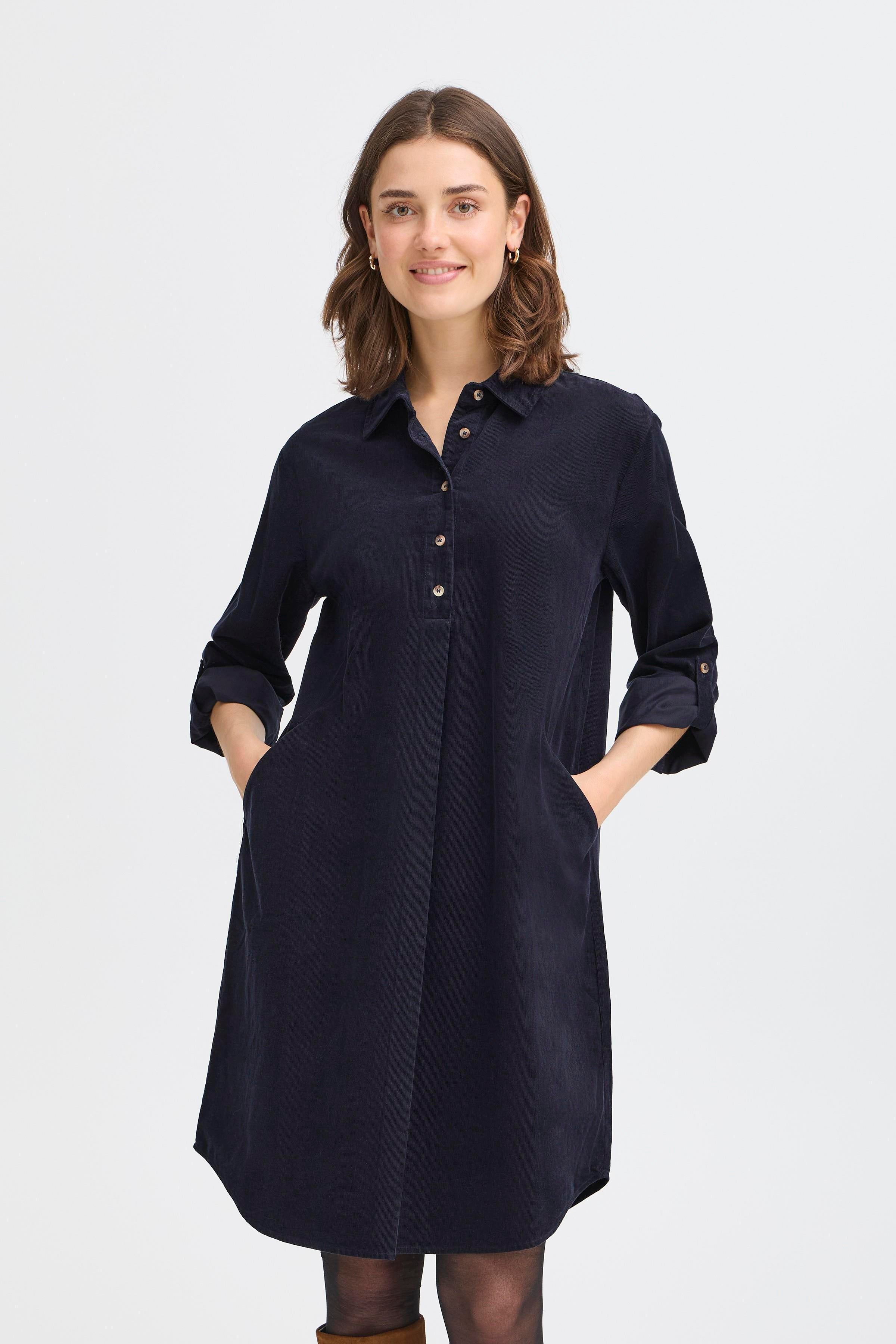 FRCORY SH 3 fra FRANSA er en skjortekjole med afslappet pasform og klassisk krave. Lange ærmer med manchetter og knaplukning. Komfortabel knælang model til mange anledninger.