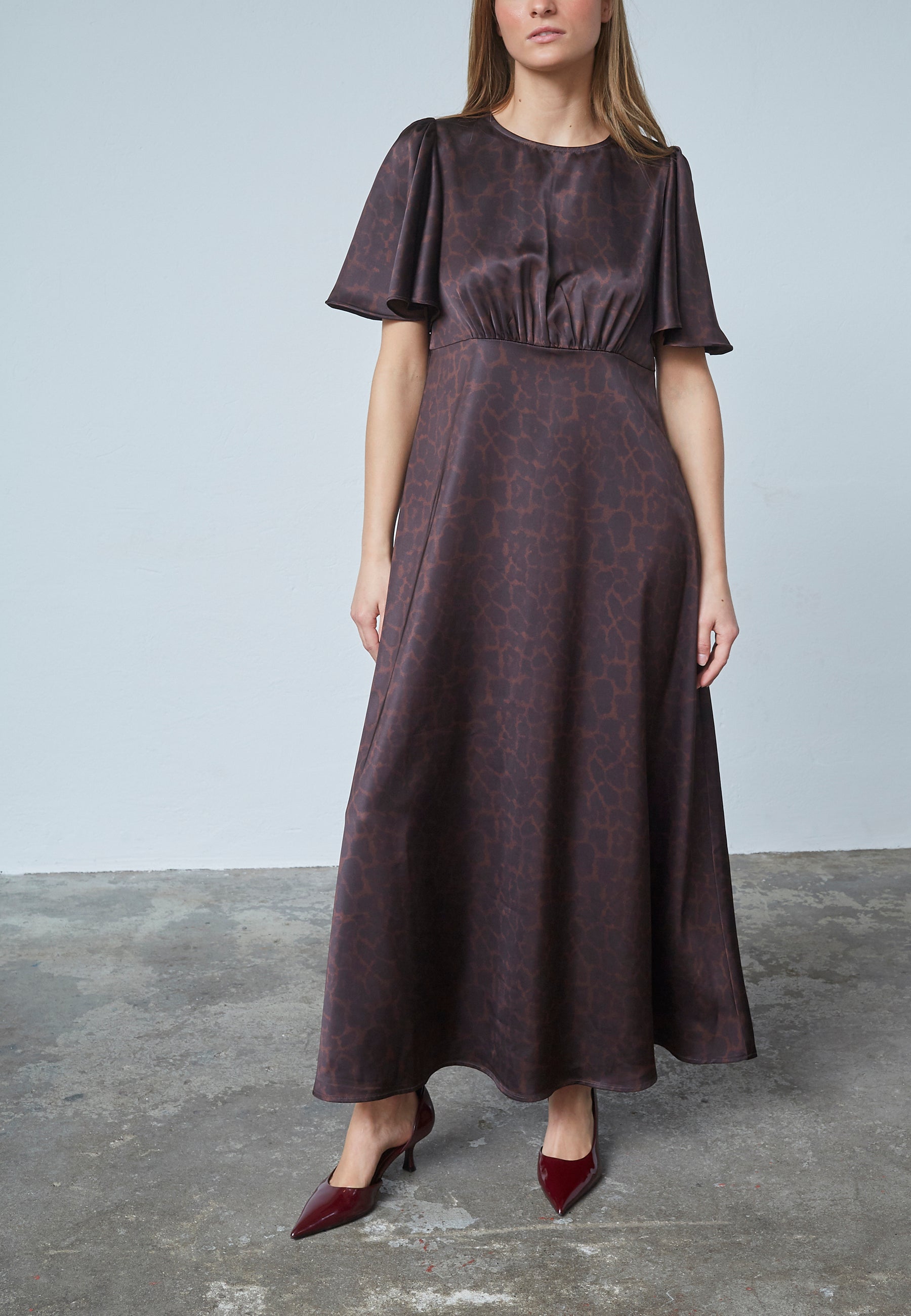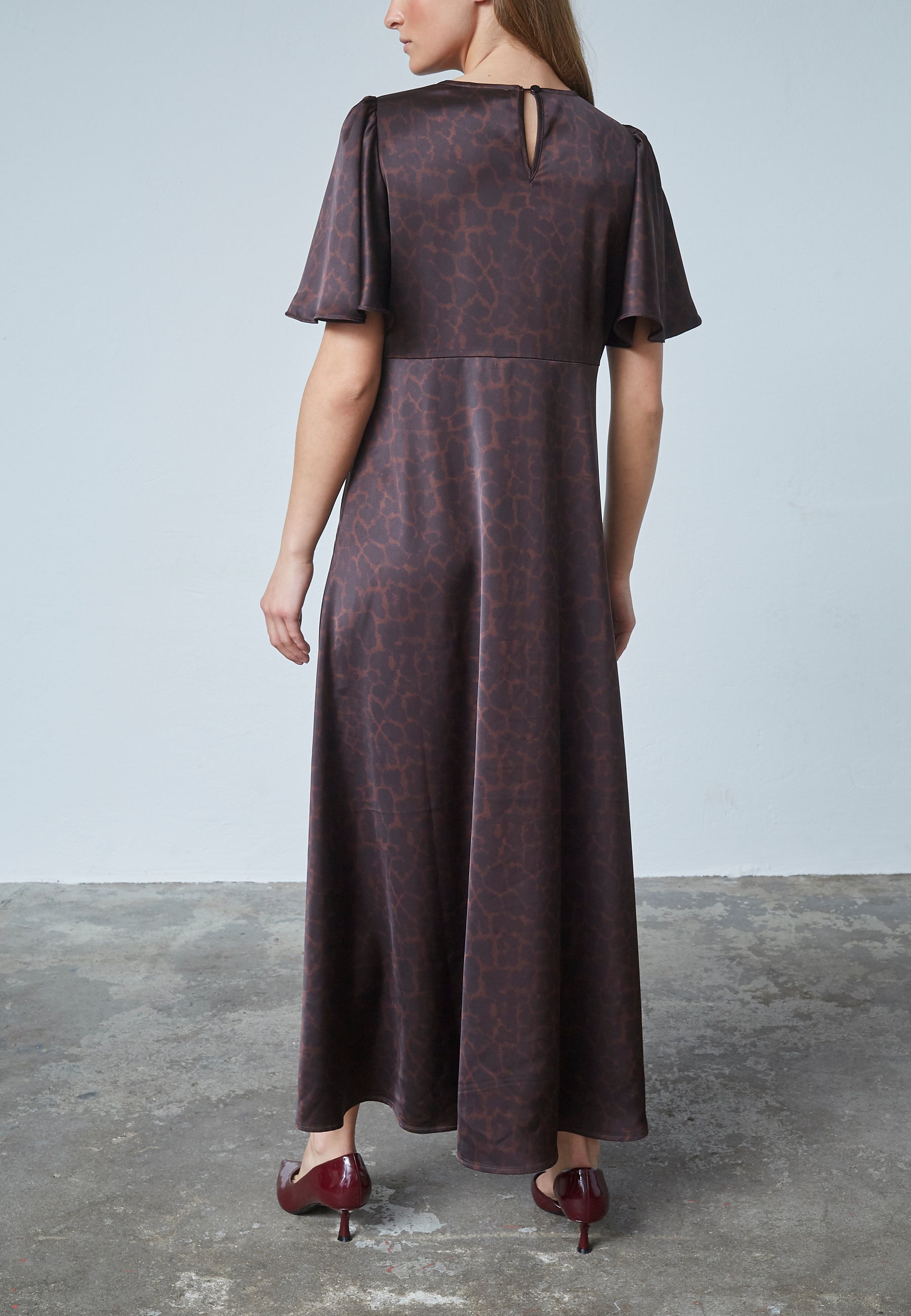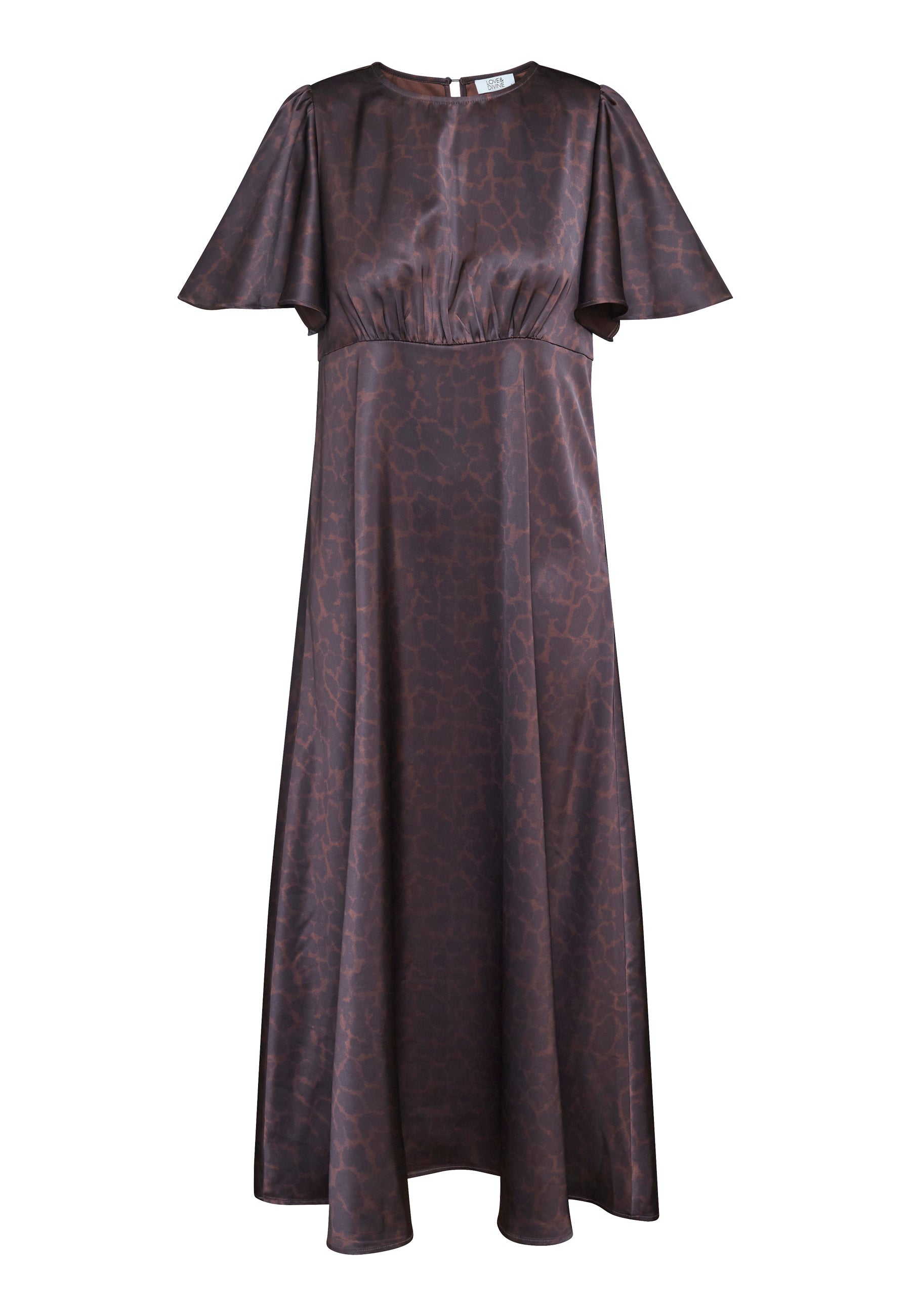 LOVE1000-13 er en smuk maxi-kjole fra LOVE & DIVINE i et brunt leoprint.