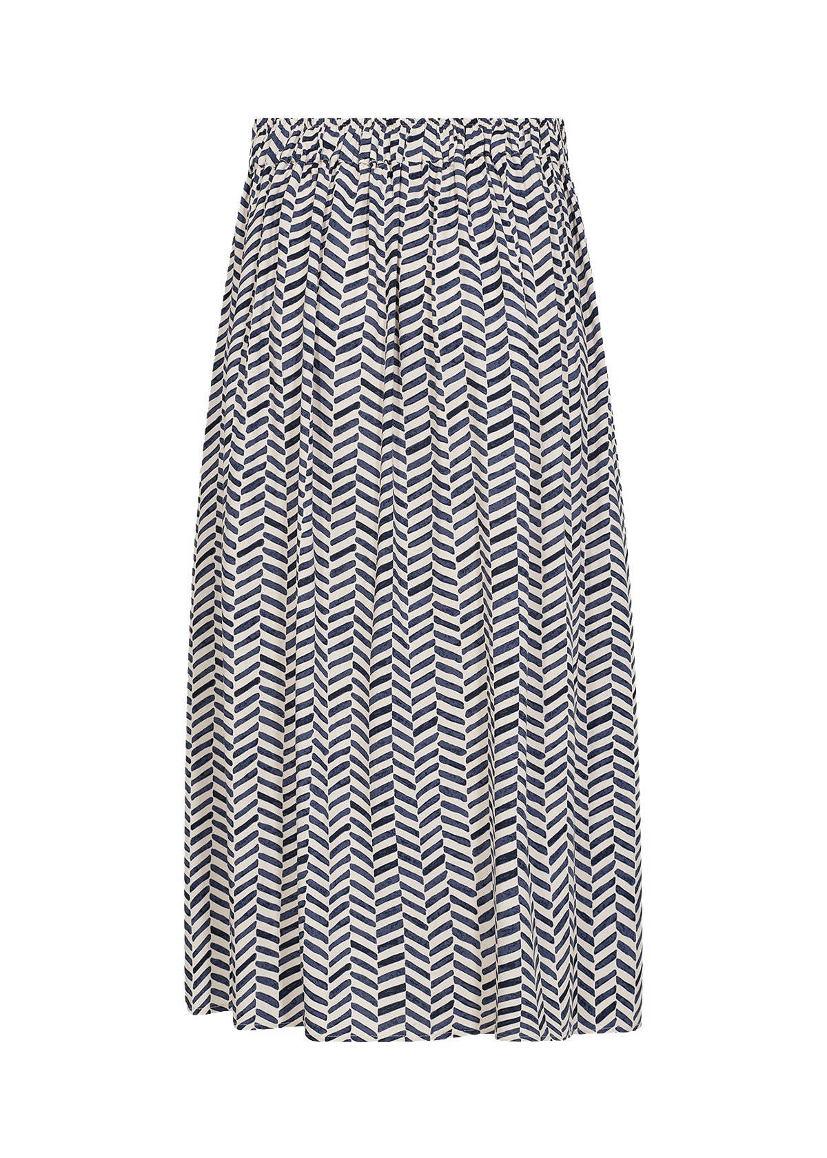 SELIA 3 fra SOYACONCEPT er en nederdel fremstillet af 100 % LENZING™ ECOVERO™-viskose. Den har et knælangt design med et geometrisk print.
