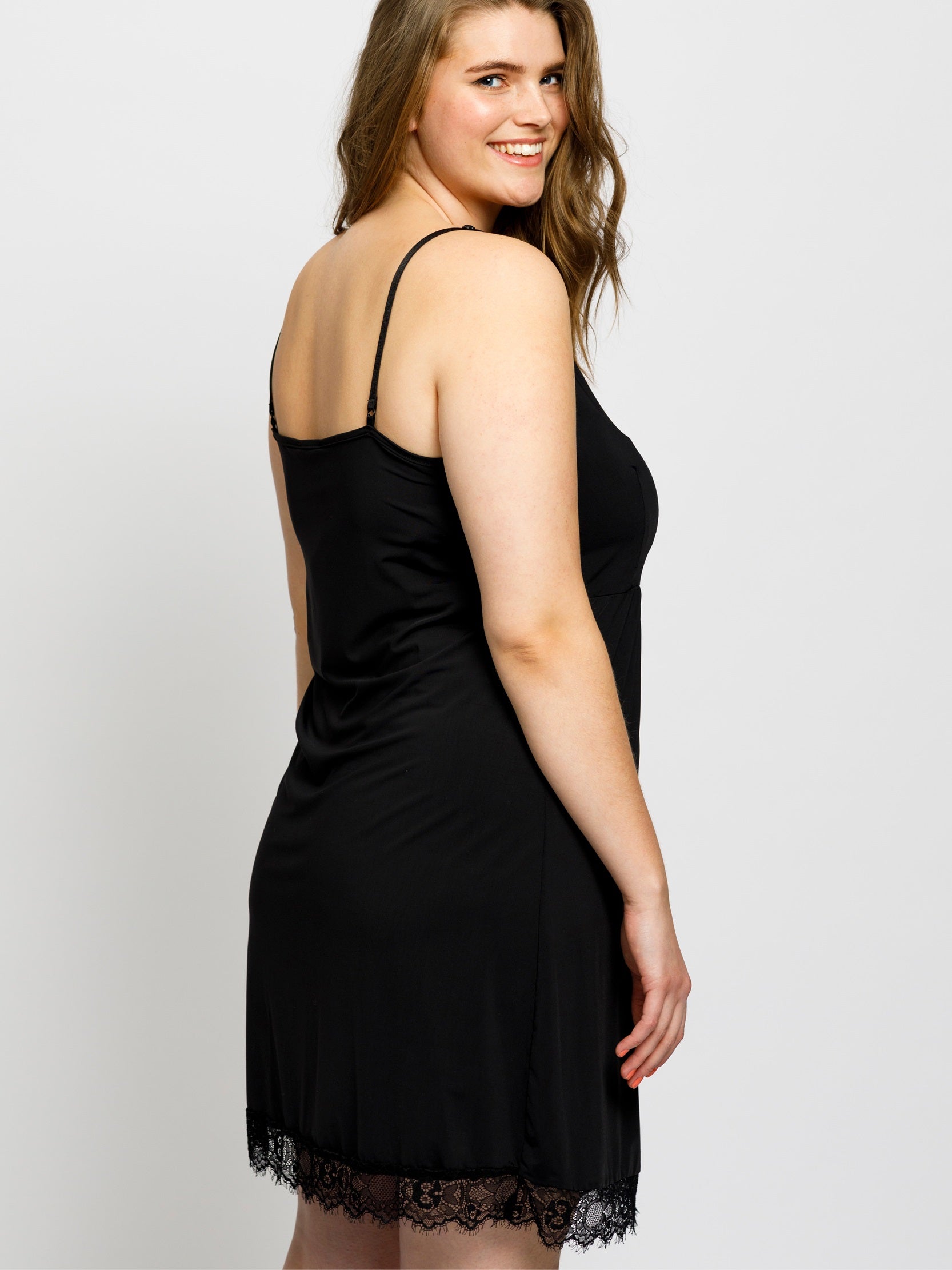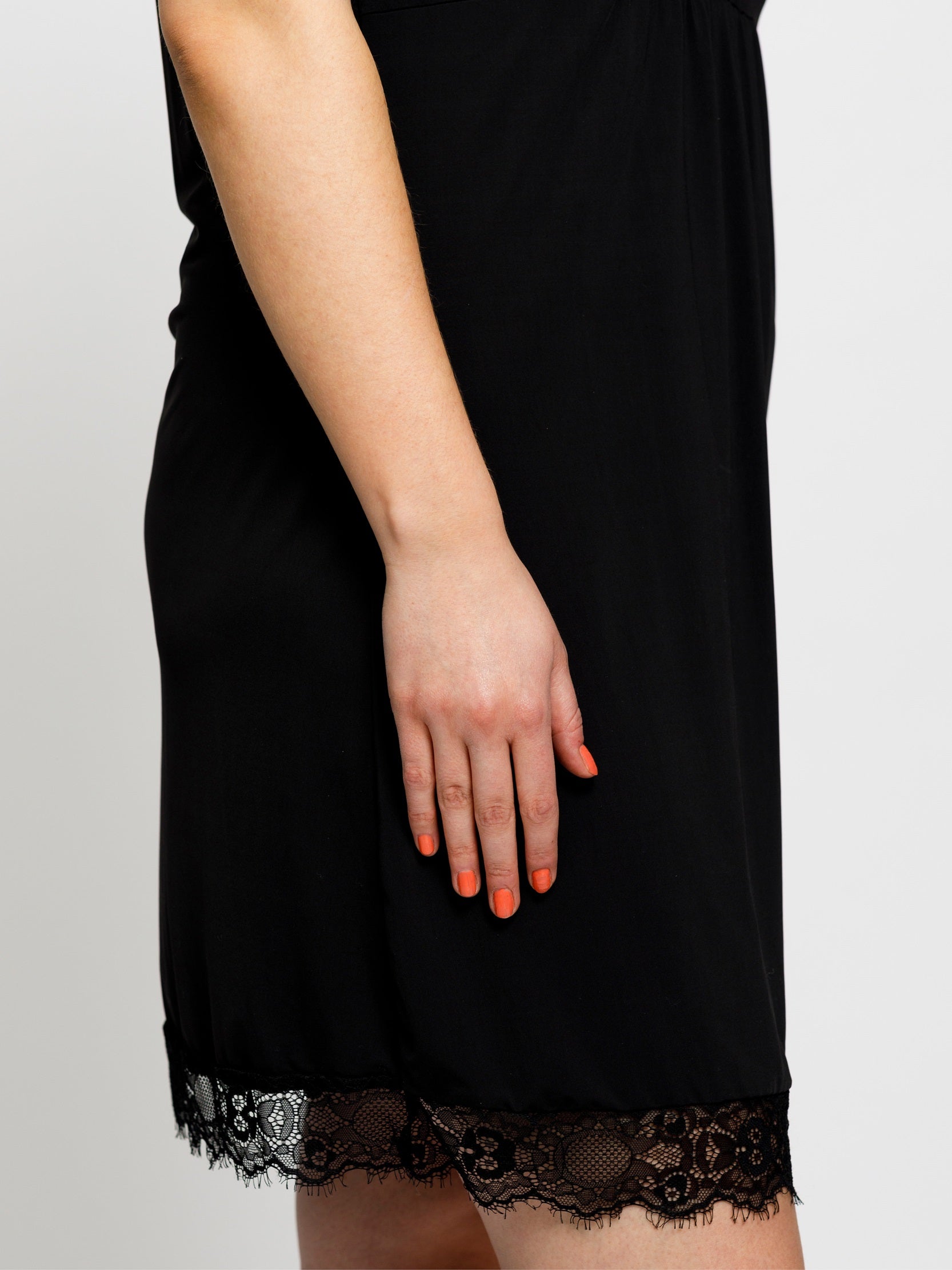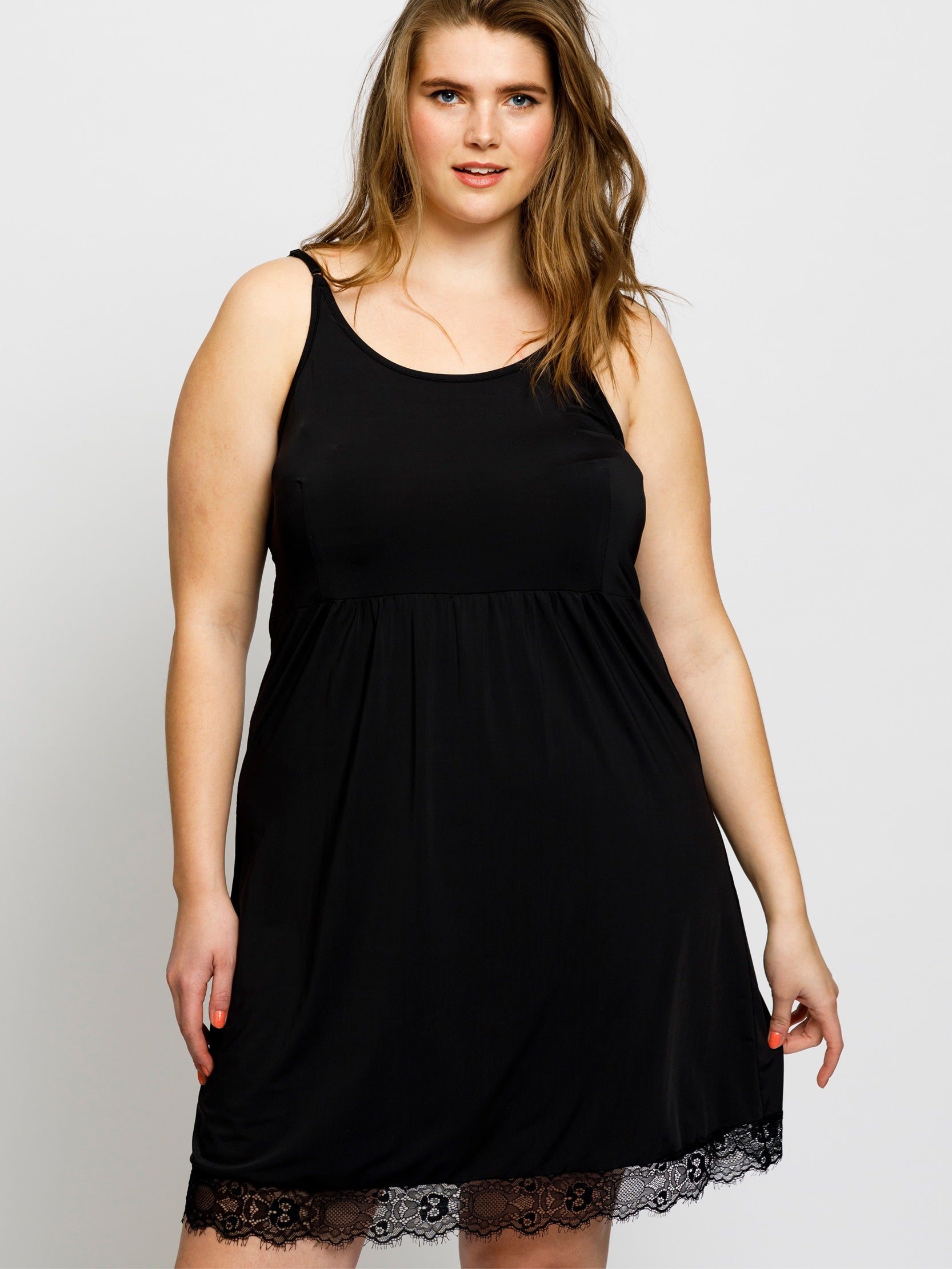 Let vævet underkjole fra NO. 1 BY OX med justerbare spaghettistropper, rynkedetaljer, en rund halsudskæring samt en smuk blondekant.