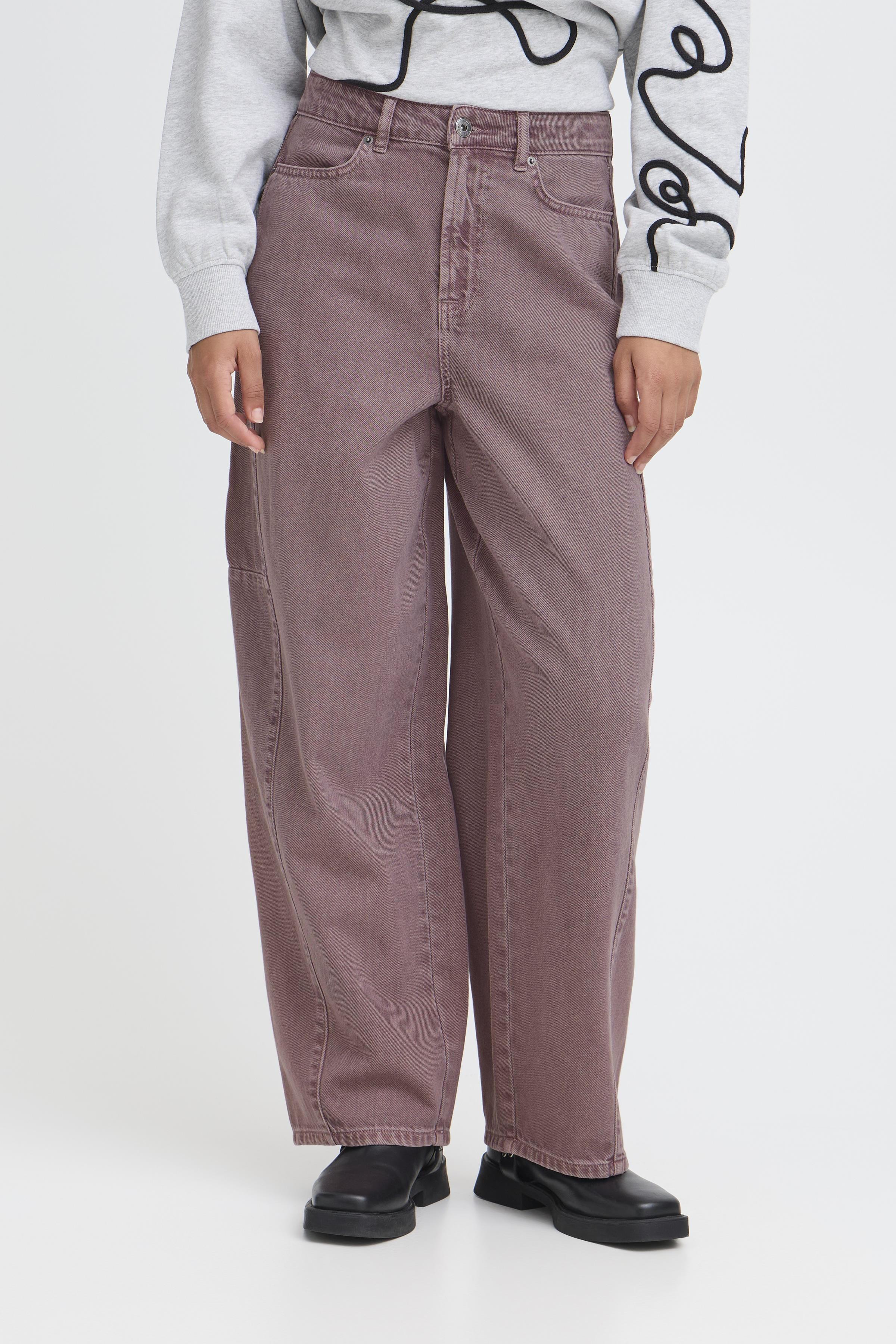 IHMIJALLA jeans fra ICHI er en super behagelig og flot model. Der er let balloneffekt i benene, klassisk lukning med knap og lynlås og lommer for og bag.