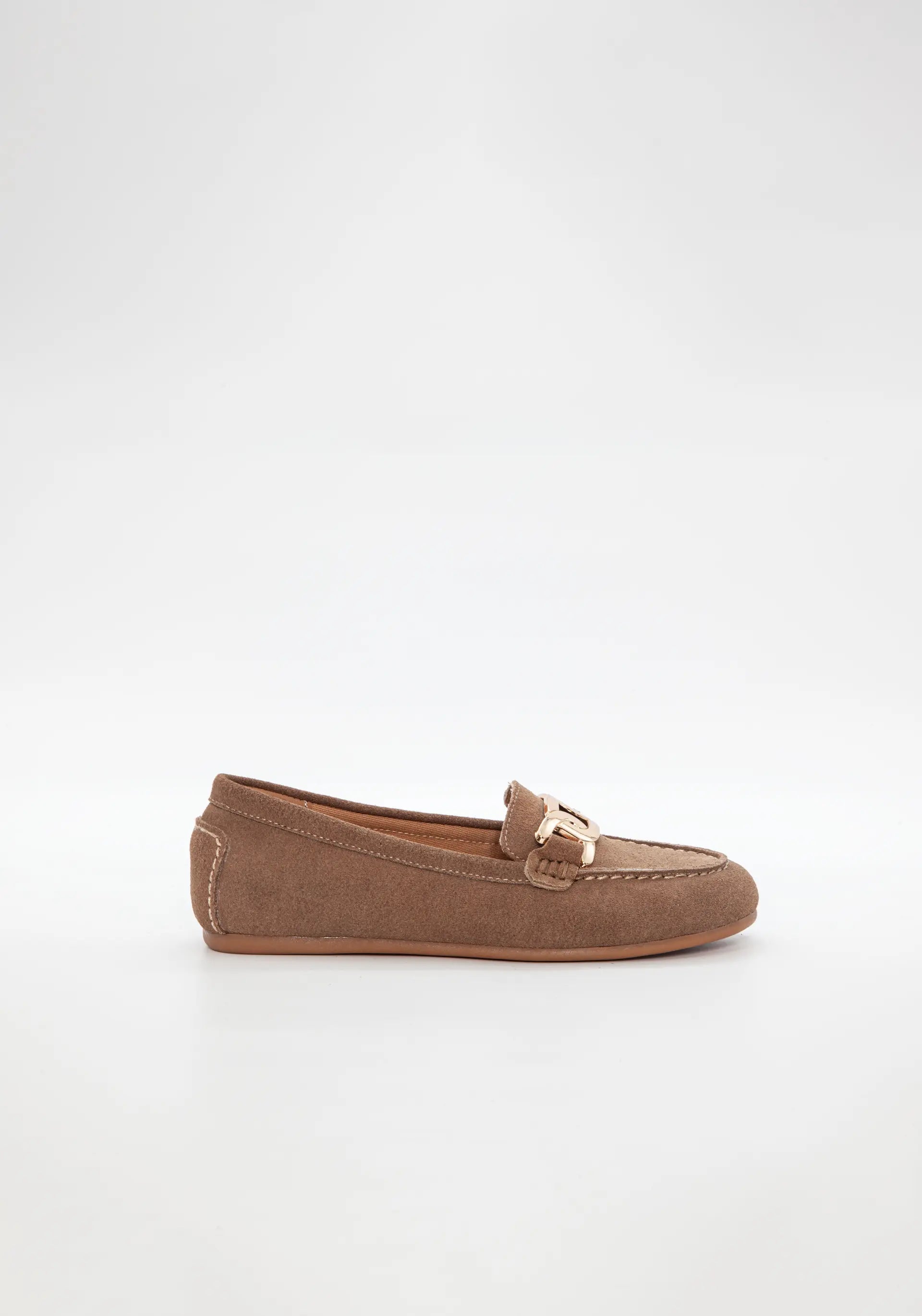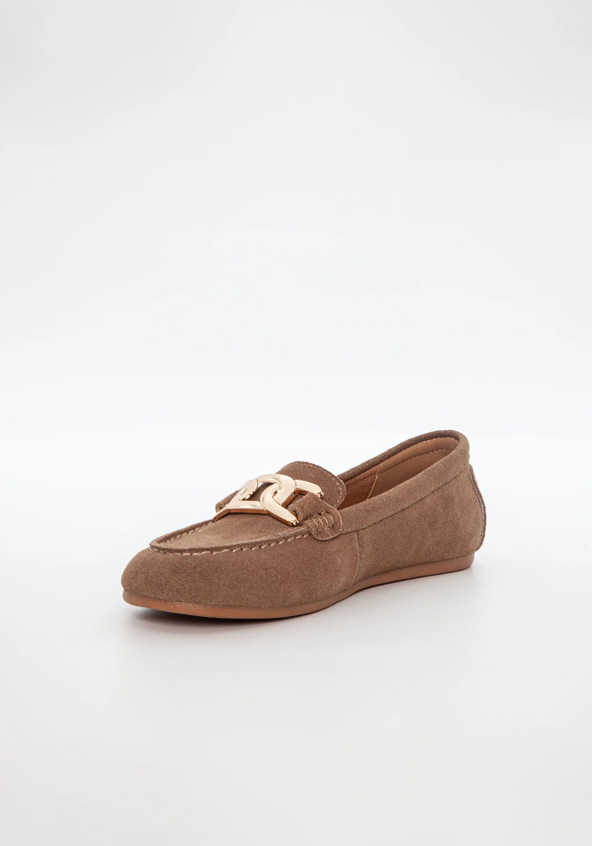 MAUCINI UNO loafer fra DUFFY er en stilren sejlersko i blød ruskindsimitation med et elegant guldfarvet spænde foran.