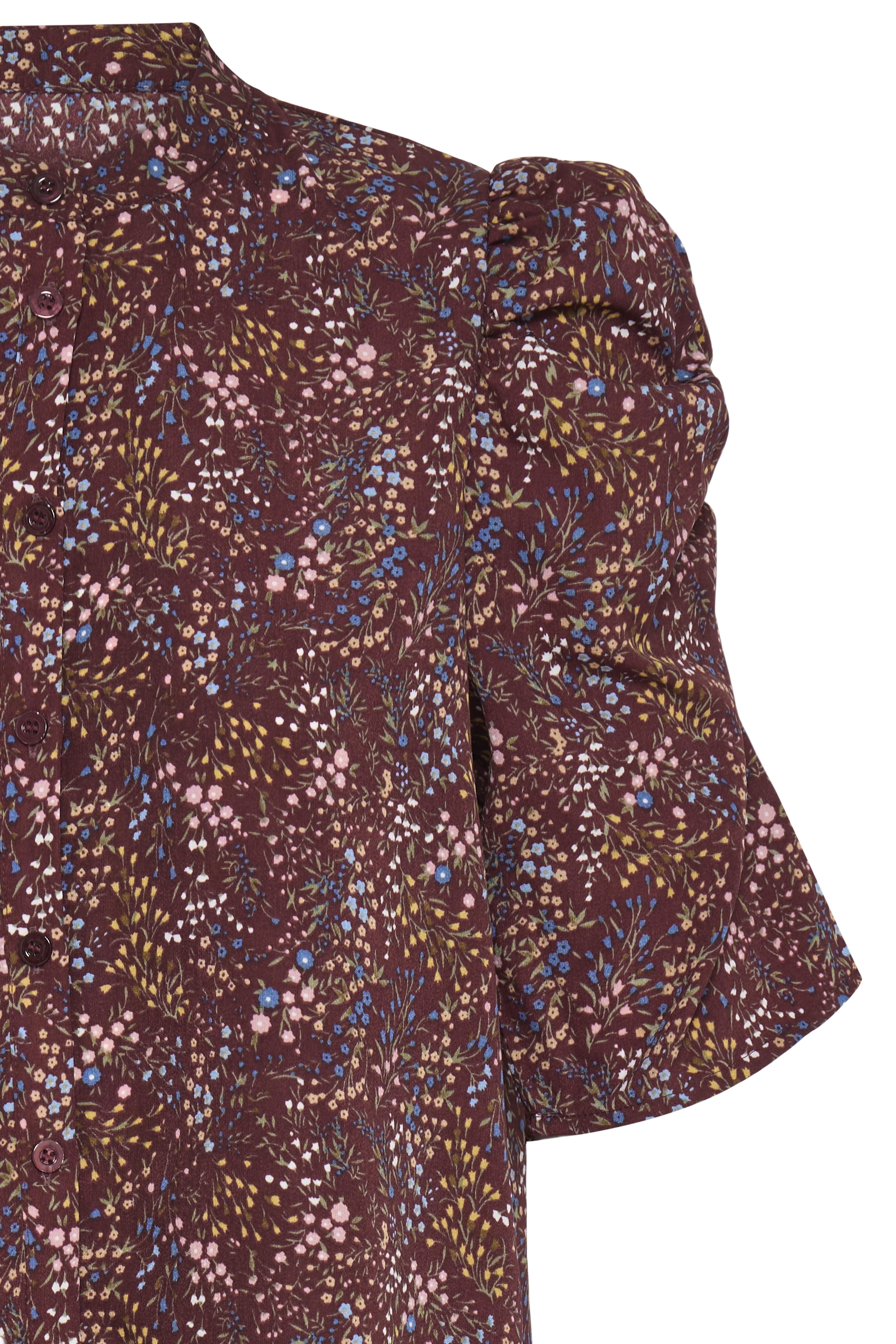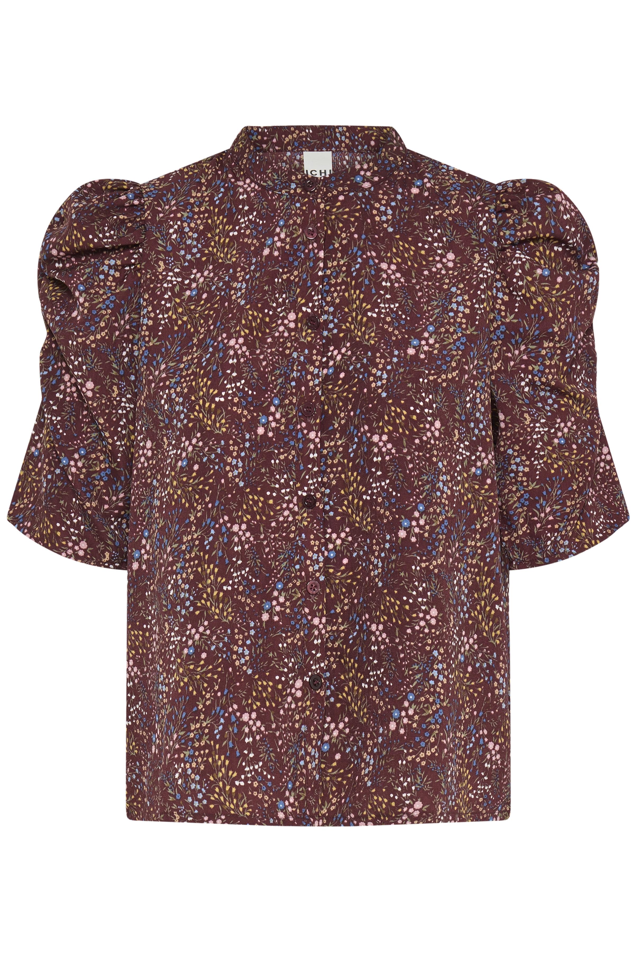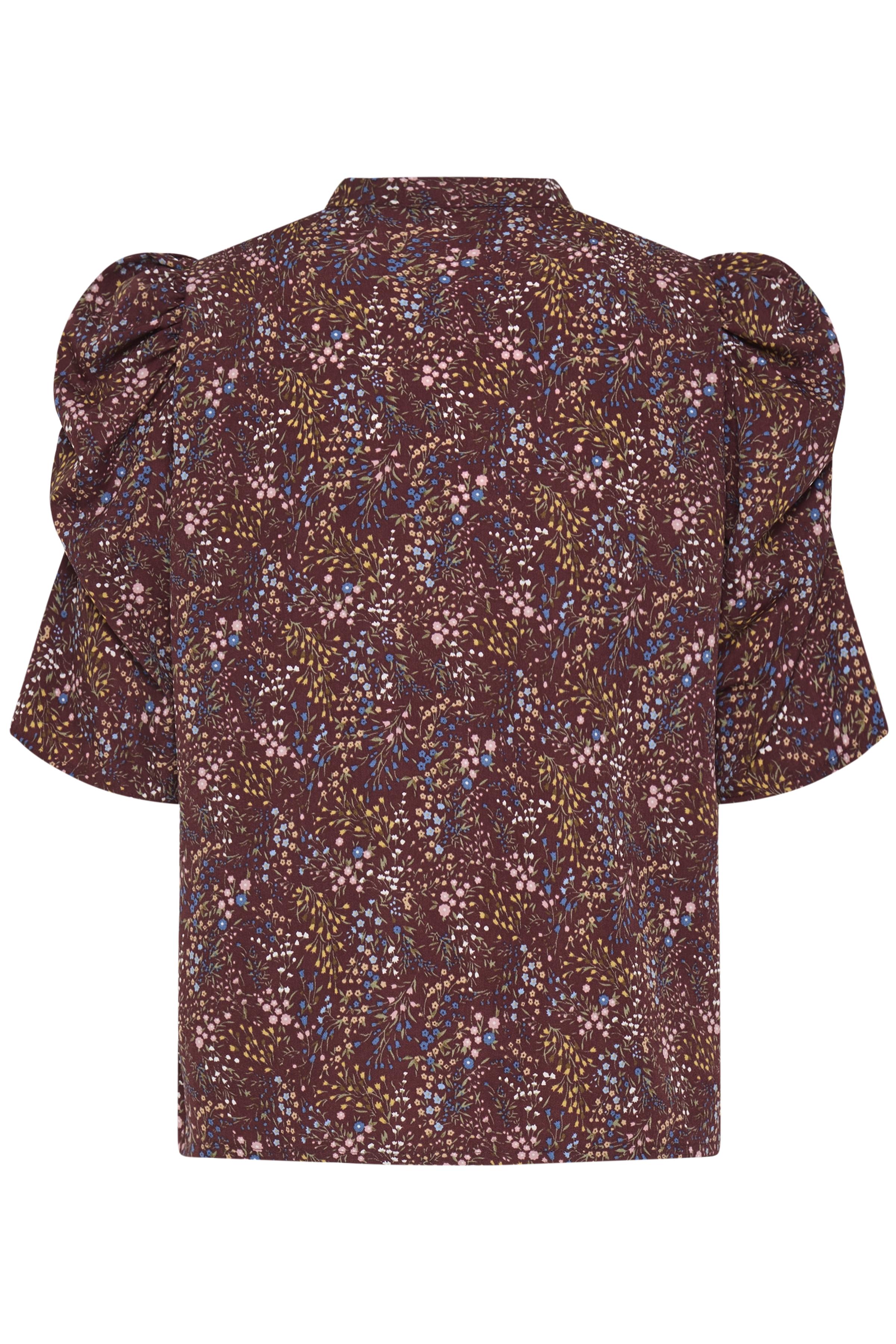 IHXNORA MS3 bluse fra ICHI i et smukt print i bordeaux farve. Den er med korte pufærmer og kan nemt bruges sammen med et par jeans til hverdag. Den er ammevenlig og har kinakrave.