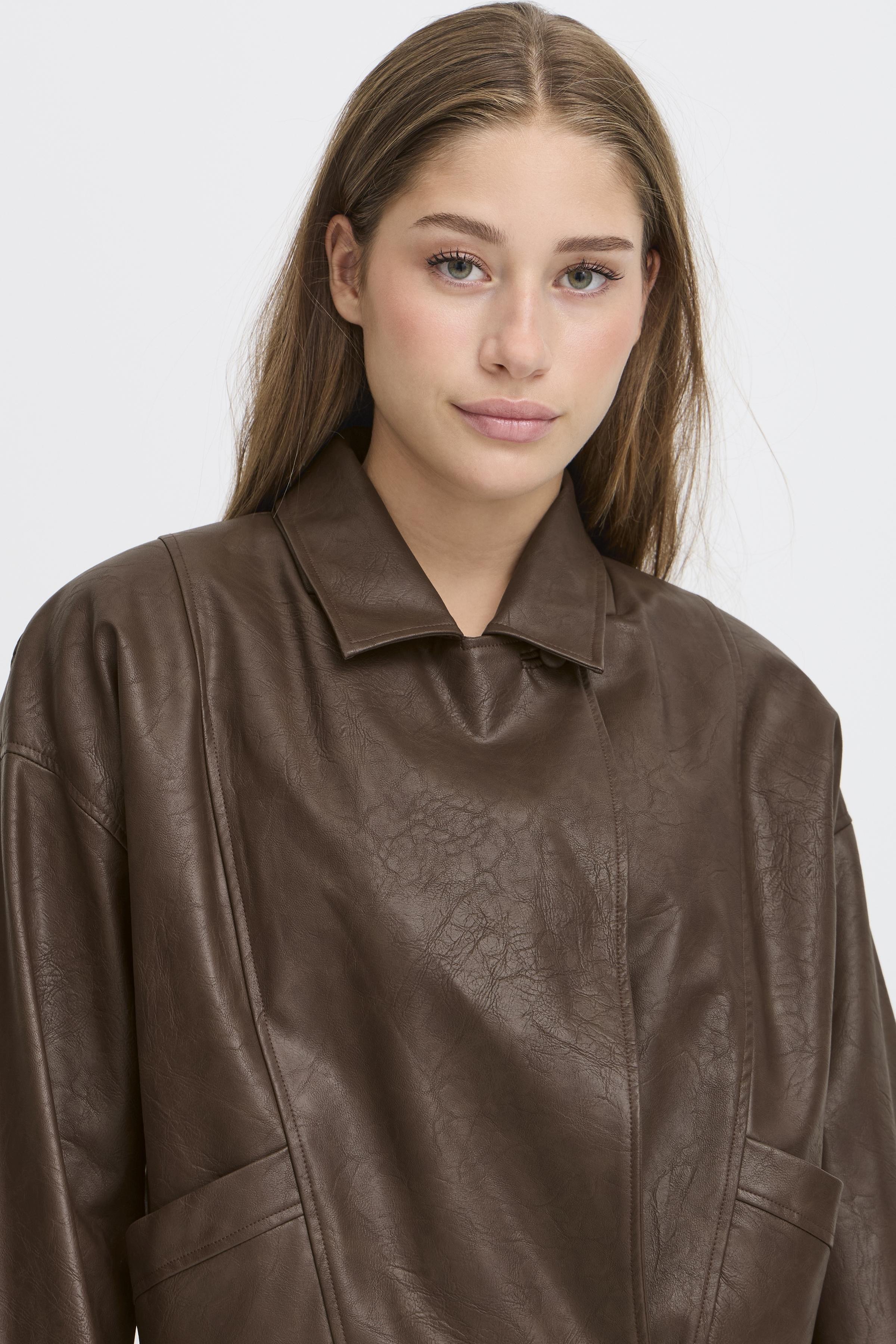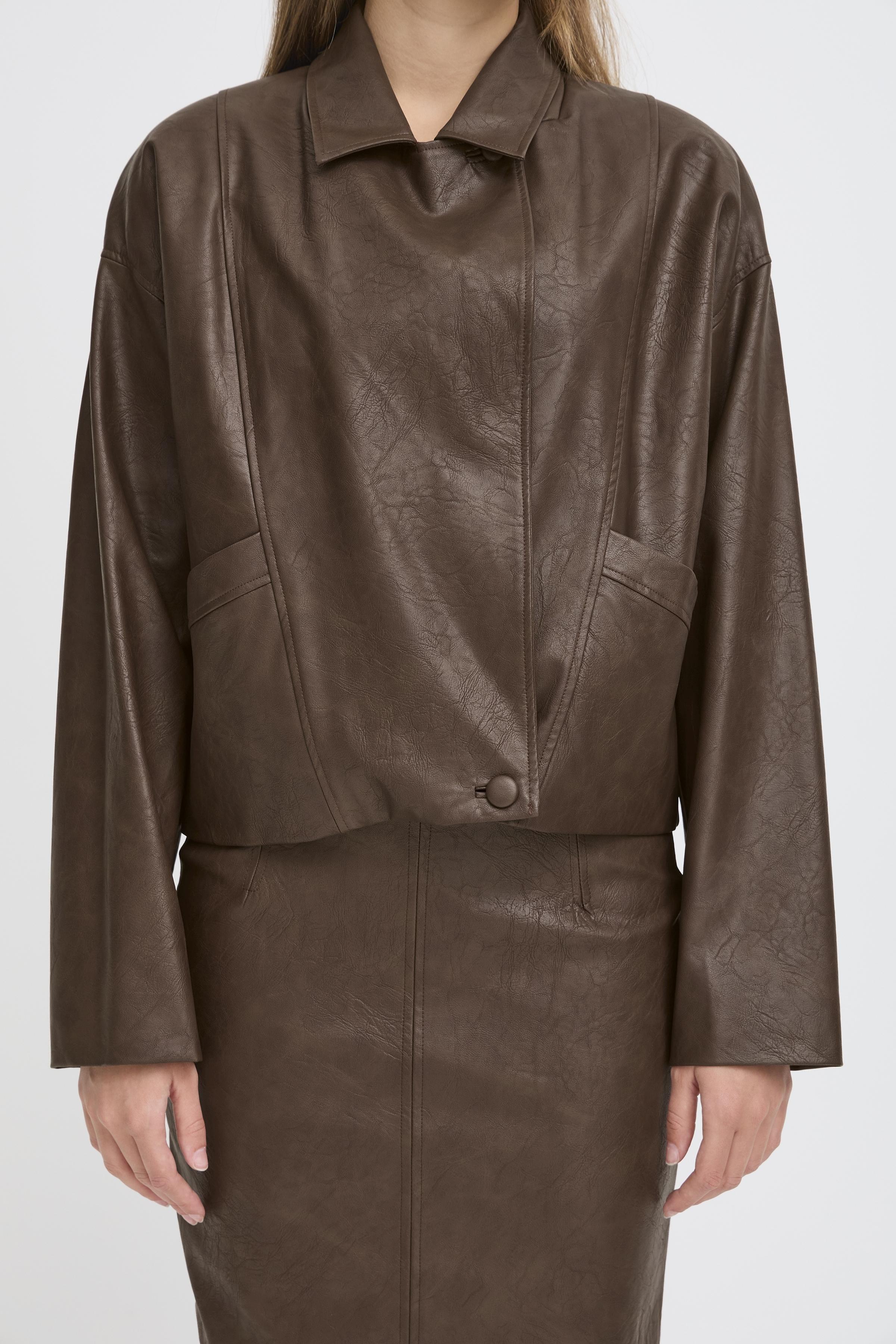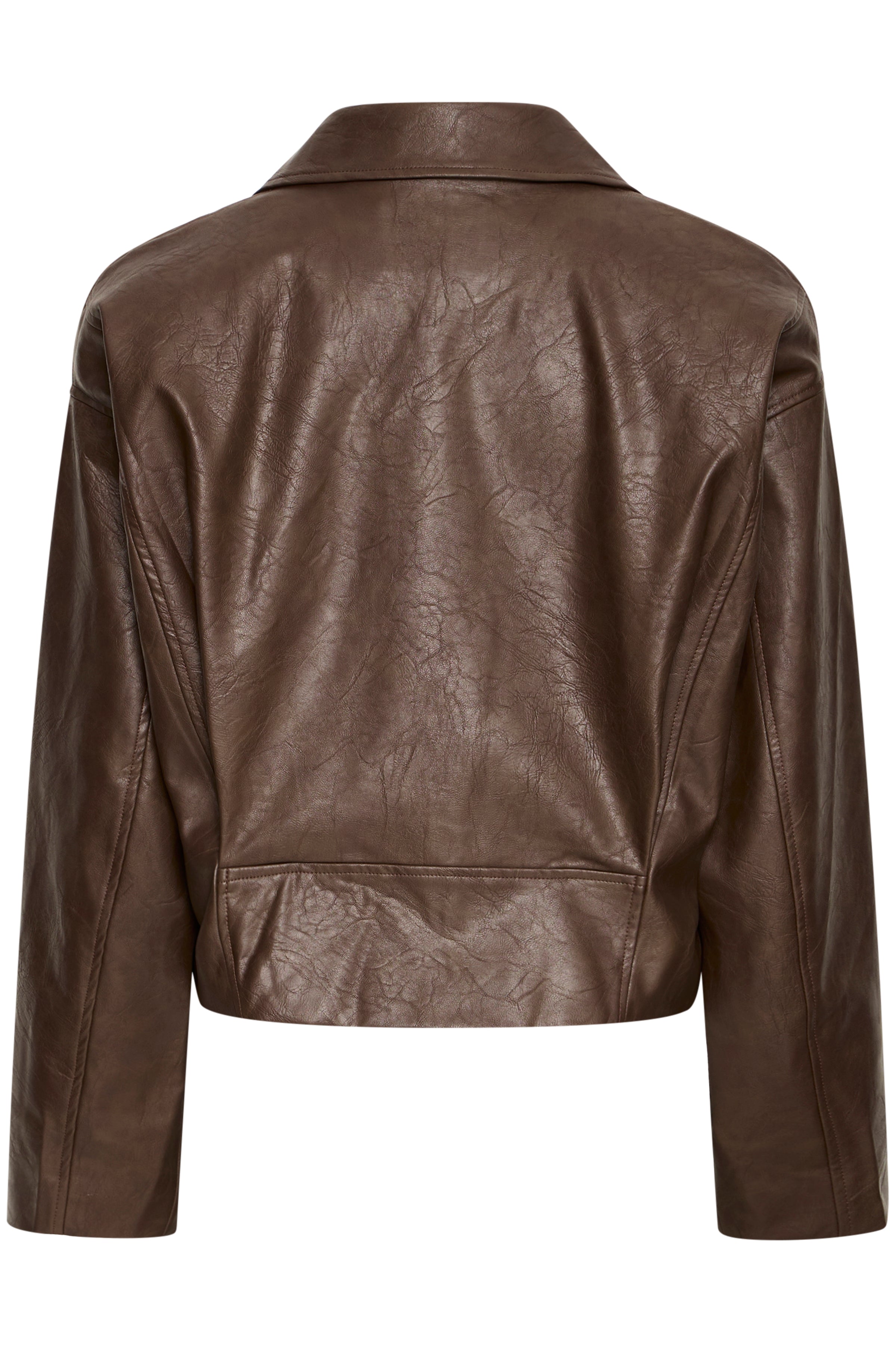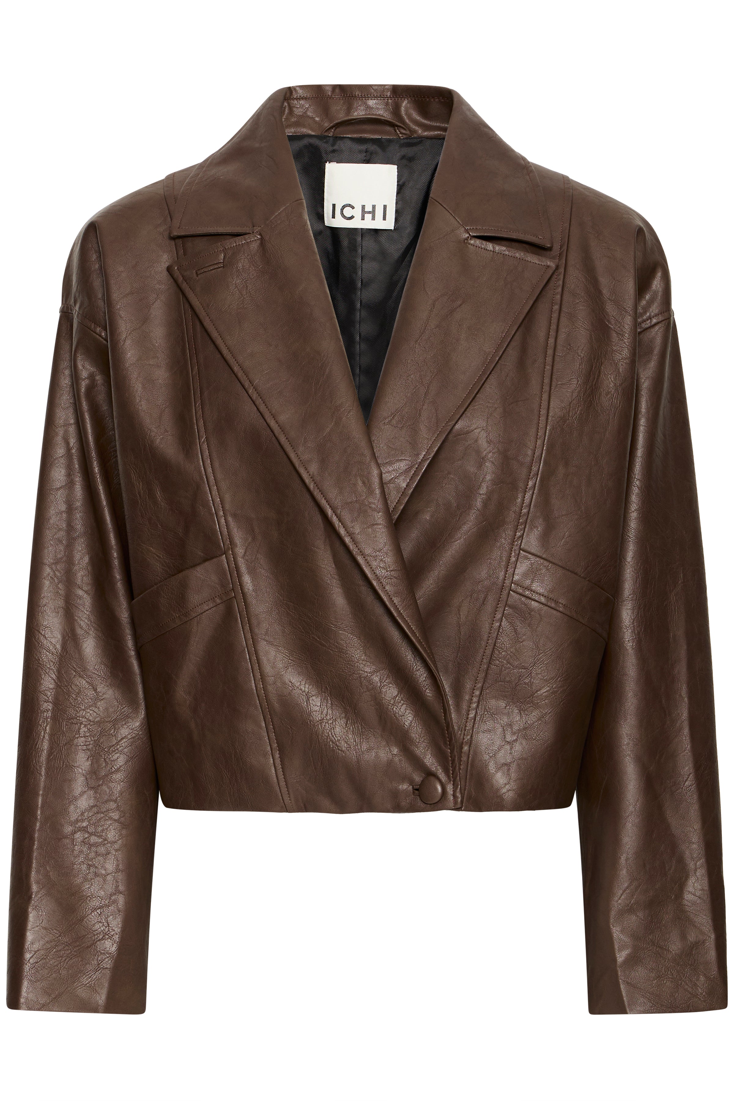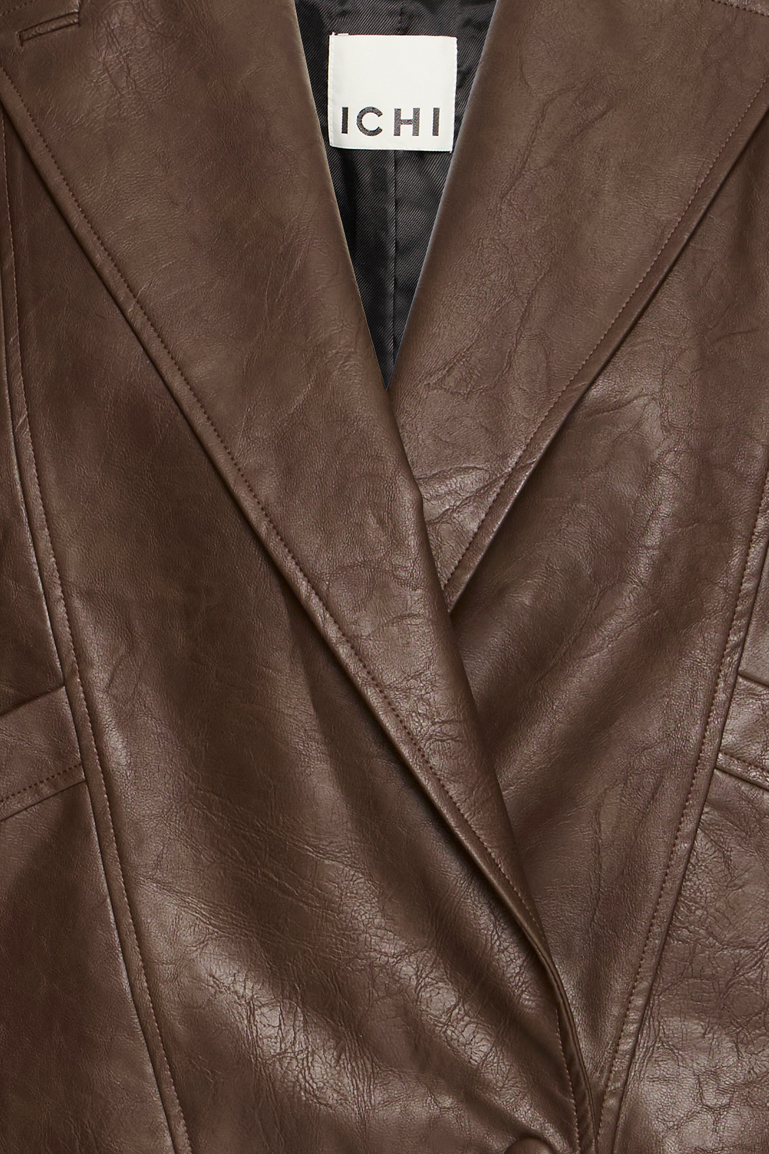 IHKILAVI jakke fra ICHI i kunstlæder har en afslappet pasform med cropped silhuet. Klassisk reverskrave, enkel knaplukning og lange ærmer for komfort.