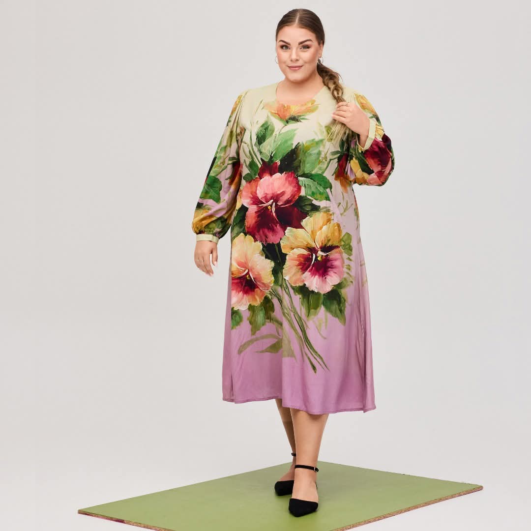 Elegant kjole fra NO. 1 BY OX i et let sommerprint, der udstråler lethed og femininitet. Kjolen har en rund halsudskæring med en diskret enkelt knaplukning i nakken. De lange ærmer tilføjer et elegant touch, mens bindebåndet i taljen giver mulighed for at tilpasse pasformen eller kjolen kan bæres løst uden bindebåndet for et mere afslappet look.