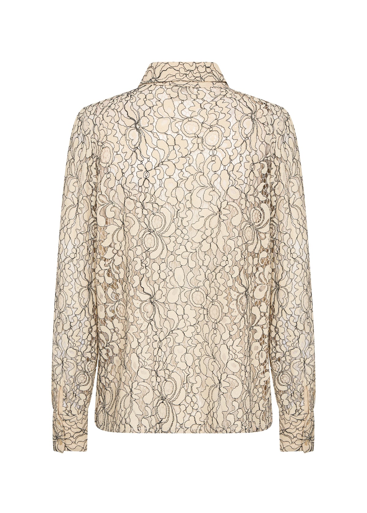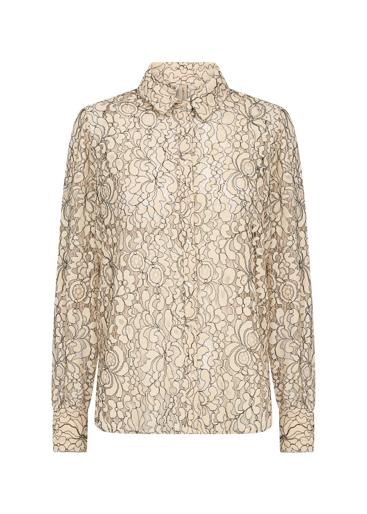 NILLA 2 fra SoyaConcept er en smuk skjorte i en lækker blandingskvalitet. Skjorten har en klassisk krave, en knapstolpe, lange ærmer og et flot blondemateriale.