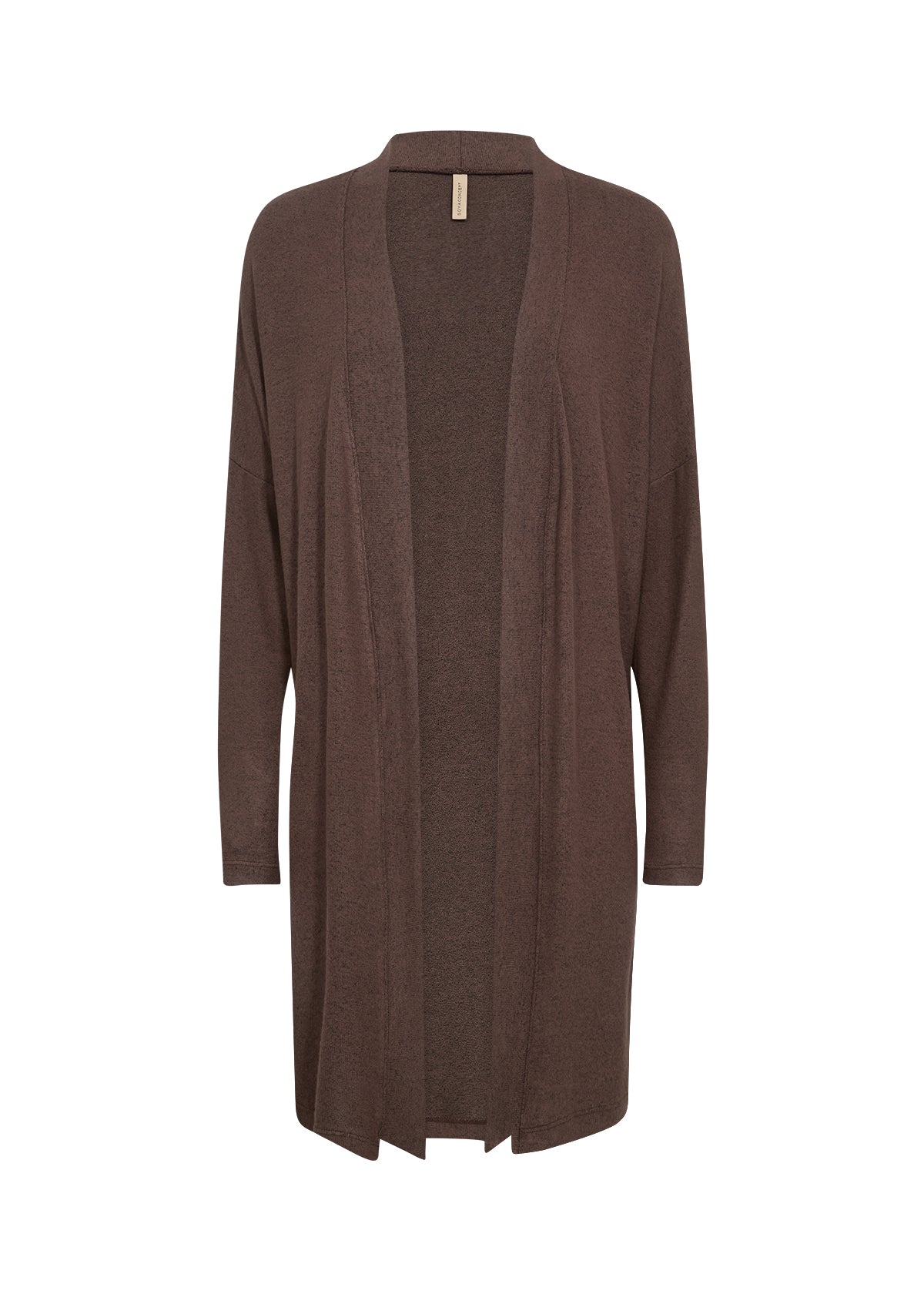BIARA 2 fra SOYACONCEPT er en behagelig cardigan i en viskose- og polyesterblanding. Den har en lang pasform og en åben front. Farven er smuk chokoladebrun.