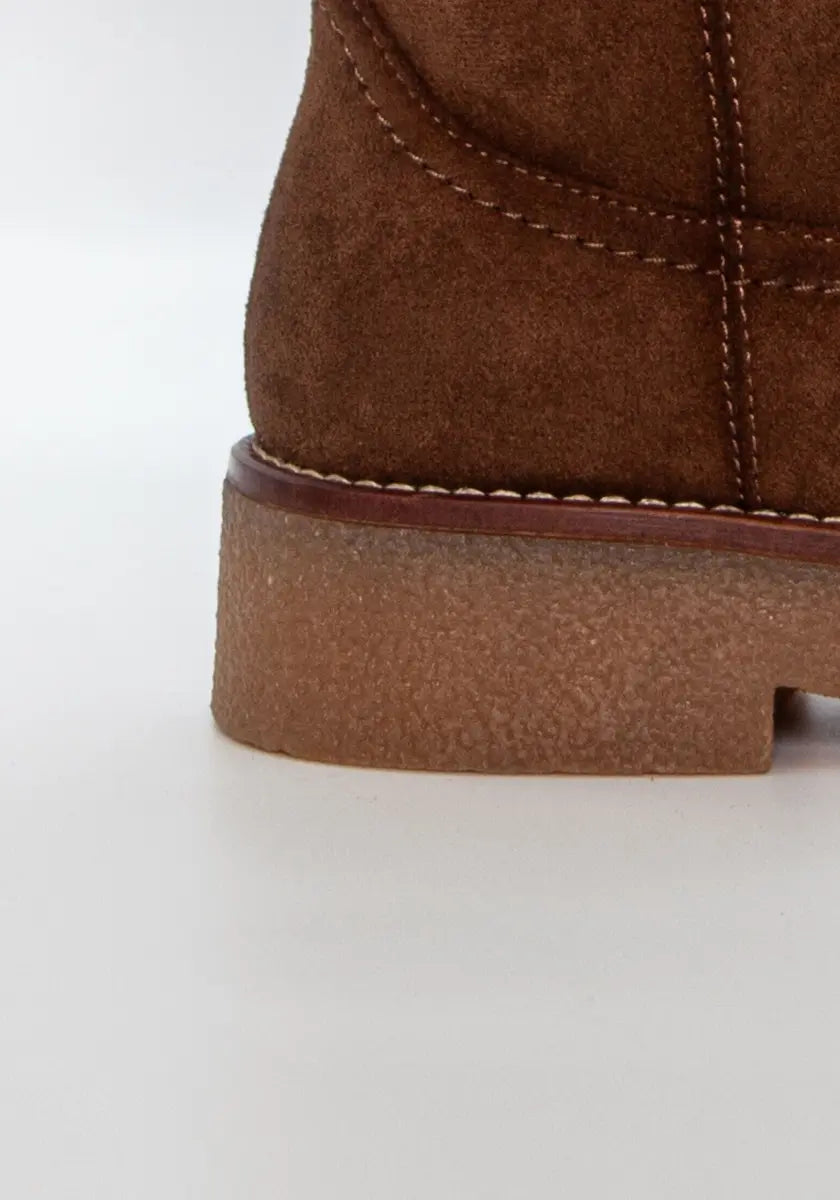 CESENA UNO fra DUFFY er en klassisk, stilfuld støvle i imiteret ruskind og en praktisk gummisål med en lavere hæl, der gør den både brugbar og tidløs i sit design.