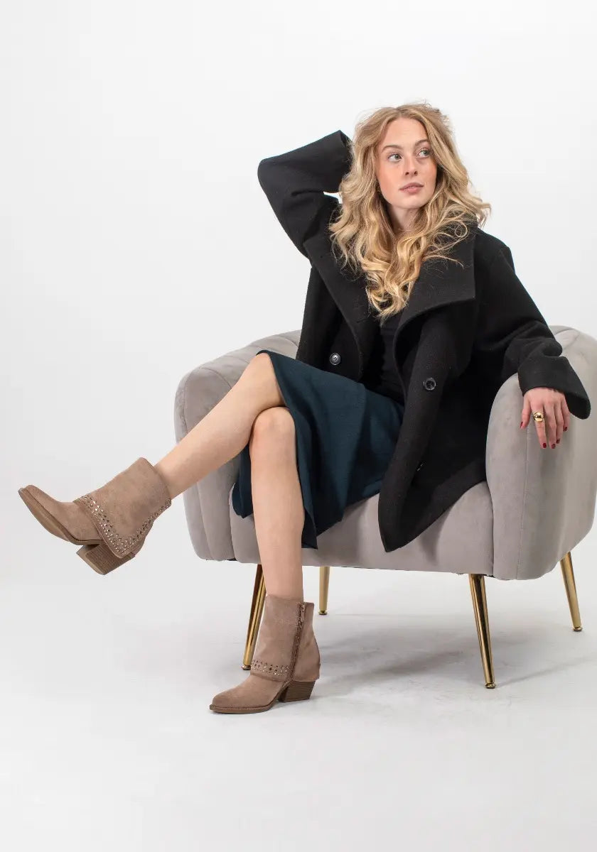 Støvlen er flot dekoreret med små nitter, og har praktisk lynlås på indersiden.
