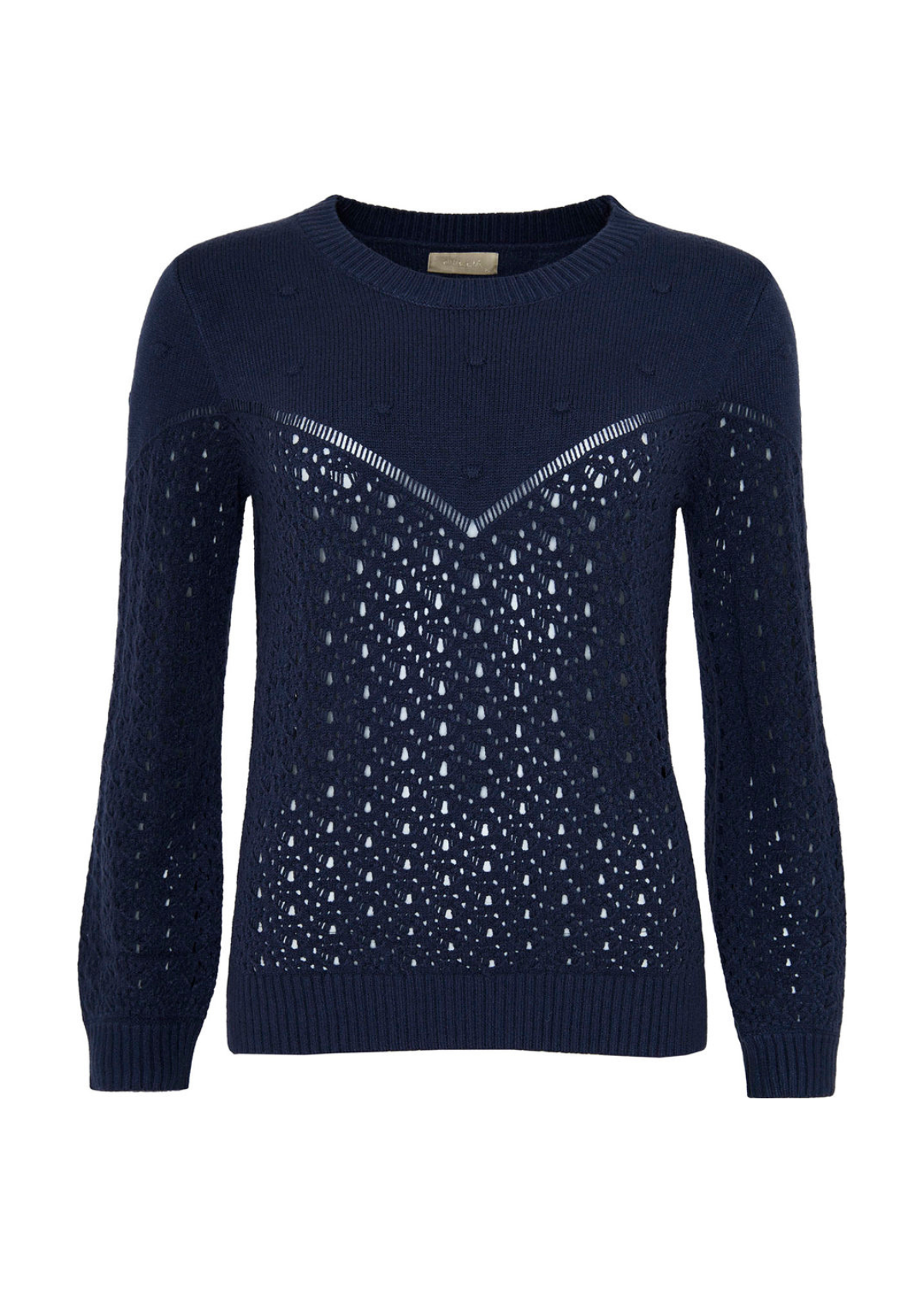 ASTRID strik bluse fra OFELIA er en flot strikket bluse med elegant hulmønster. Den lange ærmer og rund hals.