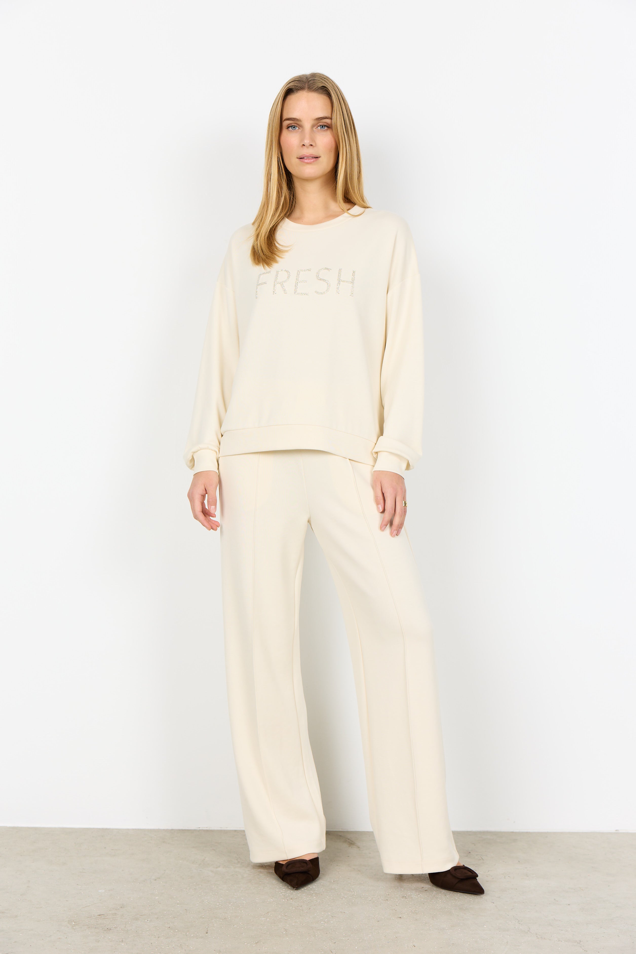 Denne elegante sweatshirt passer godt sammen med jeans eller leggings for et stilfuldt og behageligt outfit.