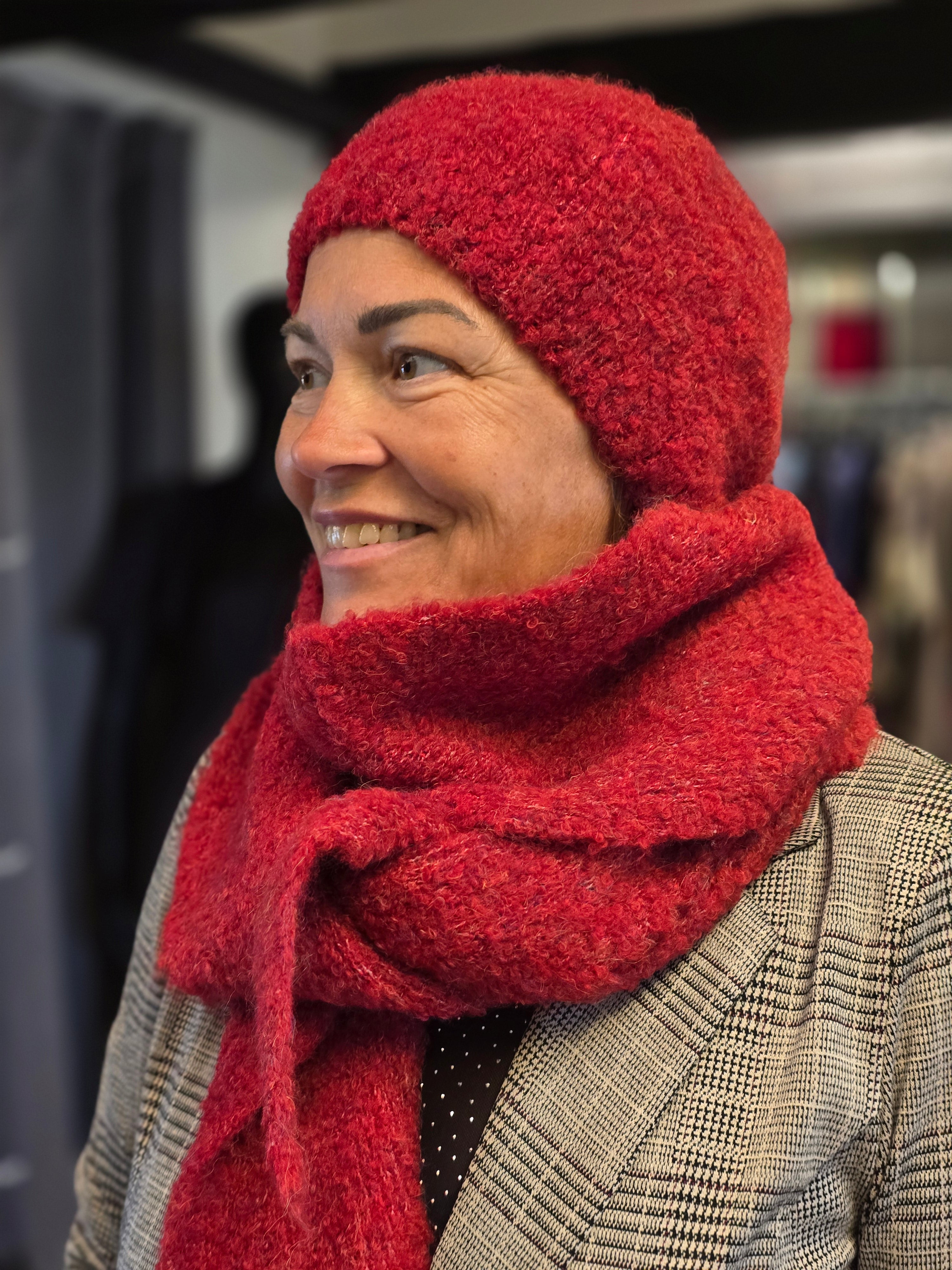 IAMAUI alpehue fra ICHI er et chunky strikket hue med voluminøst udtryk og blød, tekstureret overflade. Det bløde materiale kan trækkes godt ned over ørerne, eller sættes kkt på skrå.