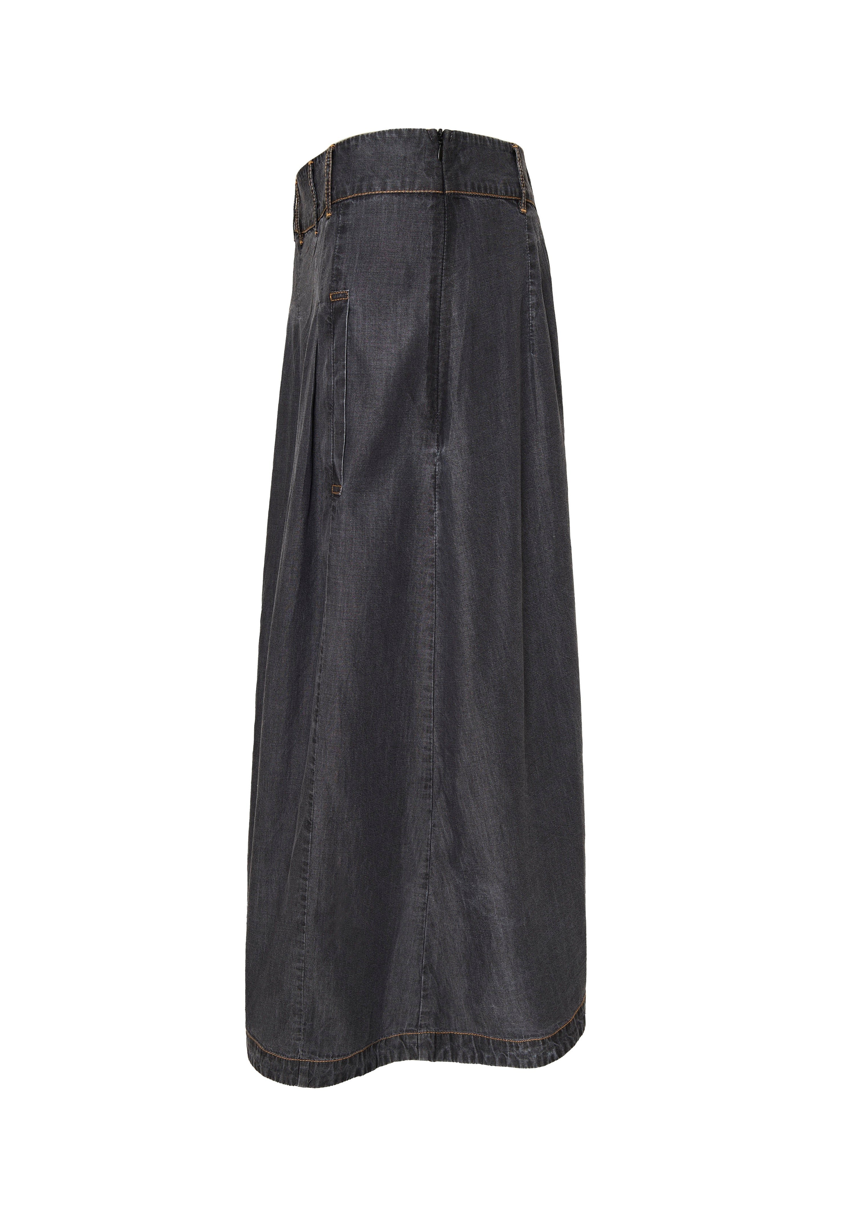 • GILL SKIRT fra OFELIA er lavet i en blød og let shiny tencel-denim, der føles luksuriøs og behagelig mod huden. Materialet falder flot og giver både god pasform og et afslappet, moderne udtryk.