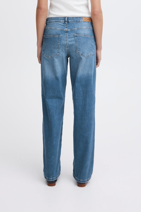 TWIGGY STRAIGHT jeans fra ICHI er denim af høj kvalitet. Disse jeans har en loose fit pasform, normal talje og fuld længde. Med 2% elastan tilbyder de en perfekt balance mellem robusthed og fleksibilitet. De har lige ben og er med knap og lynlåslukning. Disse jeans vil være et fantastisk match med en casual t-shirt eller en skjorte.